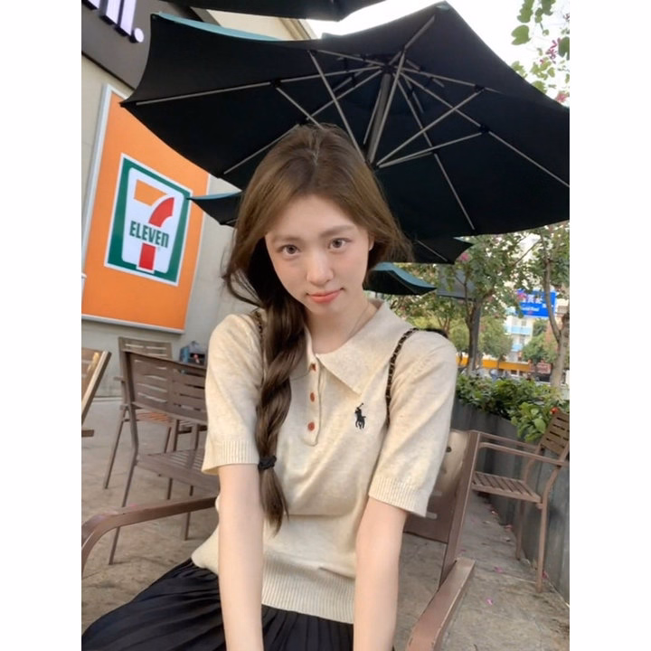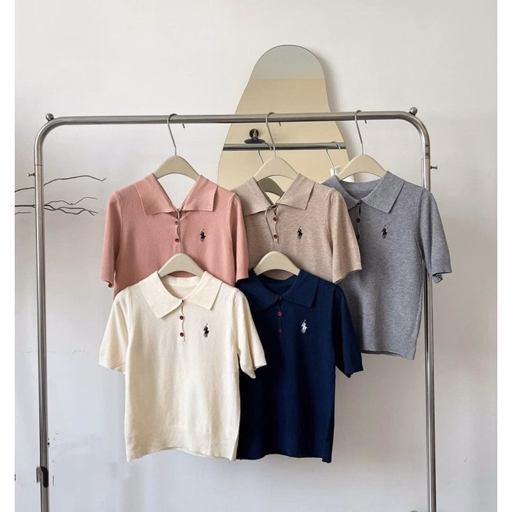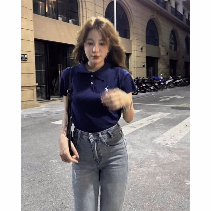 Áo Polo Trơn Cộc Tay Thêu Hình Ngựa, Vibe Hàn Quốc Xinh Yêu Dành Cho Bạn Nữ – Chipxinhxk