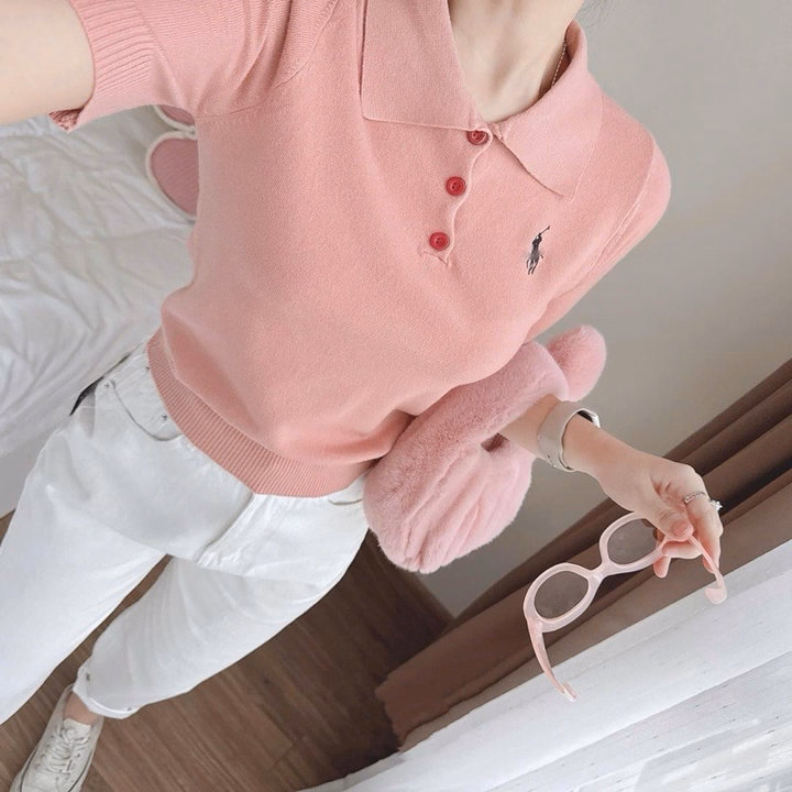 Aó với thiết kế cổ polo nhã nhặn, dáng áo ôm vừa người cực kì tôn dáng