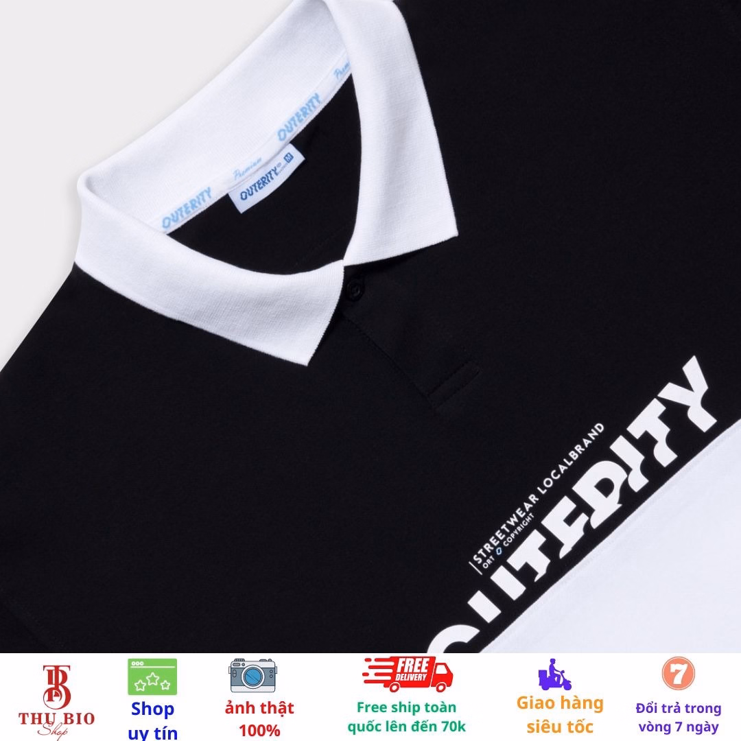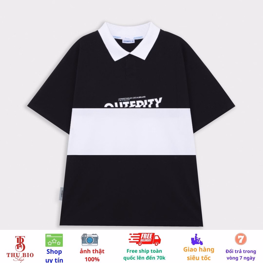 Áo Polo Unisex, Áo Thun Có Cổ Form Rộng Tay Lỡ Phối Màu Đen Trắng