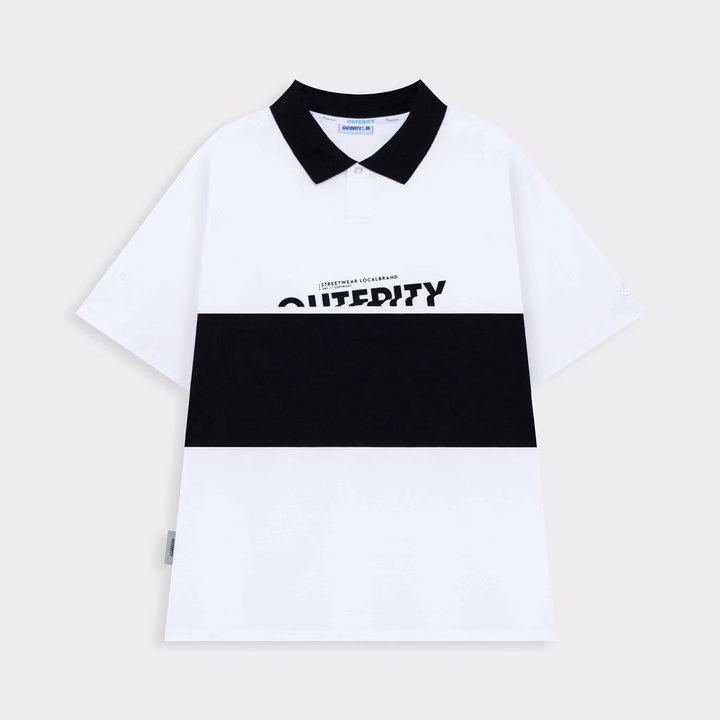 Áo Polo Unisex Nam Nữ Form Rộng Phối Màu Đen Trắng Học Sinh
