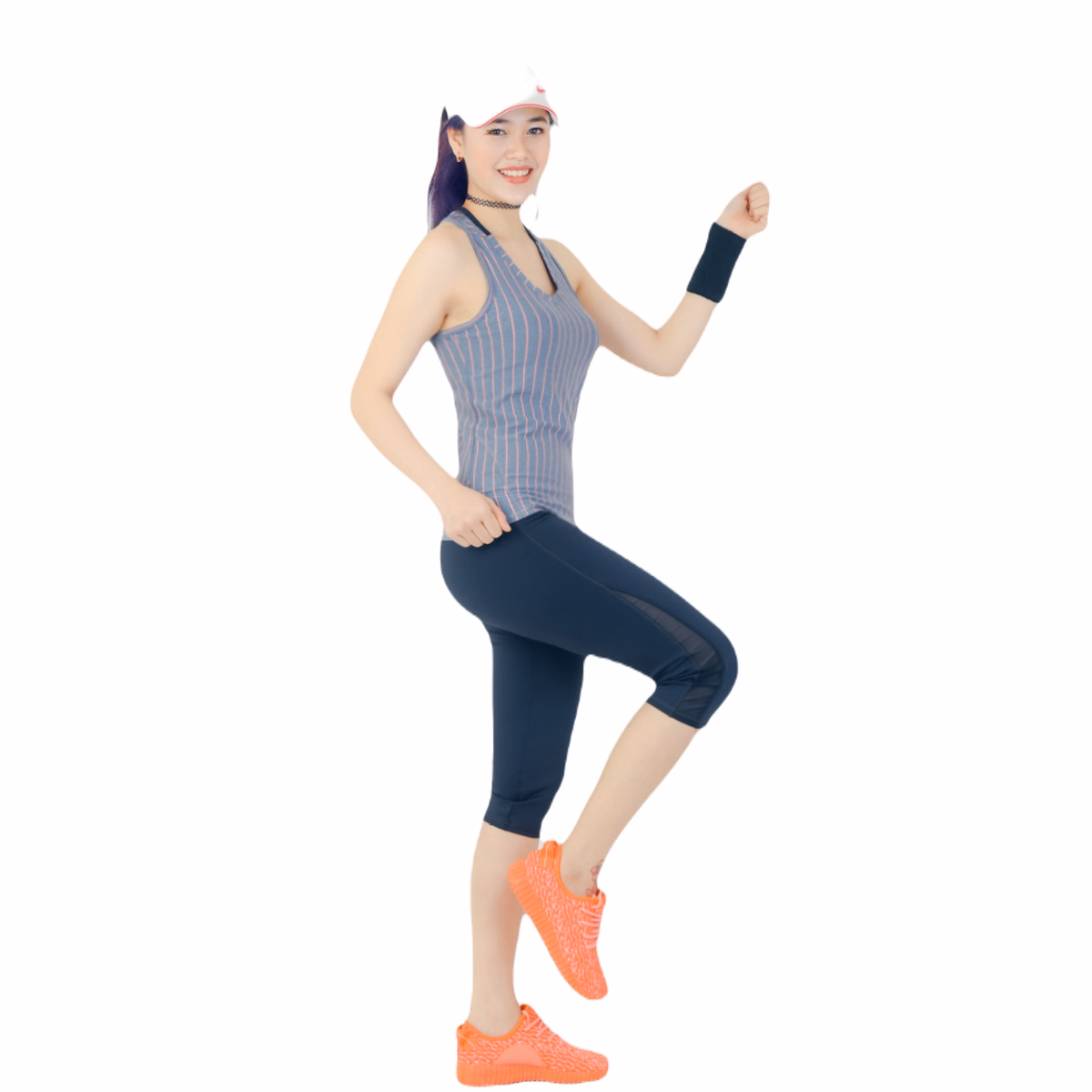 Tên sản phẩm: Áo Sát Nách Thể Thao Nữ Ar602 Màu Xám Sọc Cam – Ansa Sport