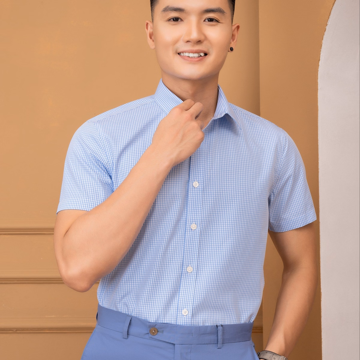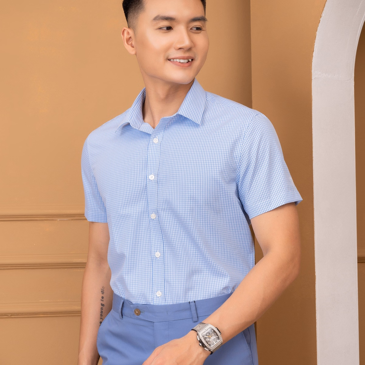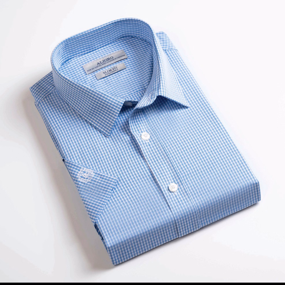 Áo Sơ Mi Baboo Slimfit Cộc Tay Kẻ Xanh Dương Algs-C121 – Aligro