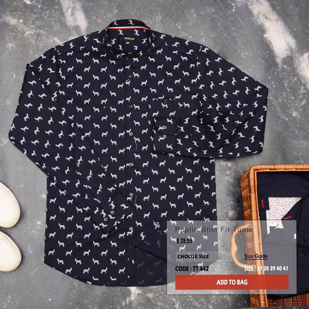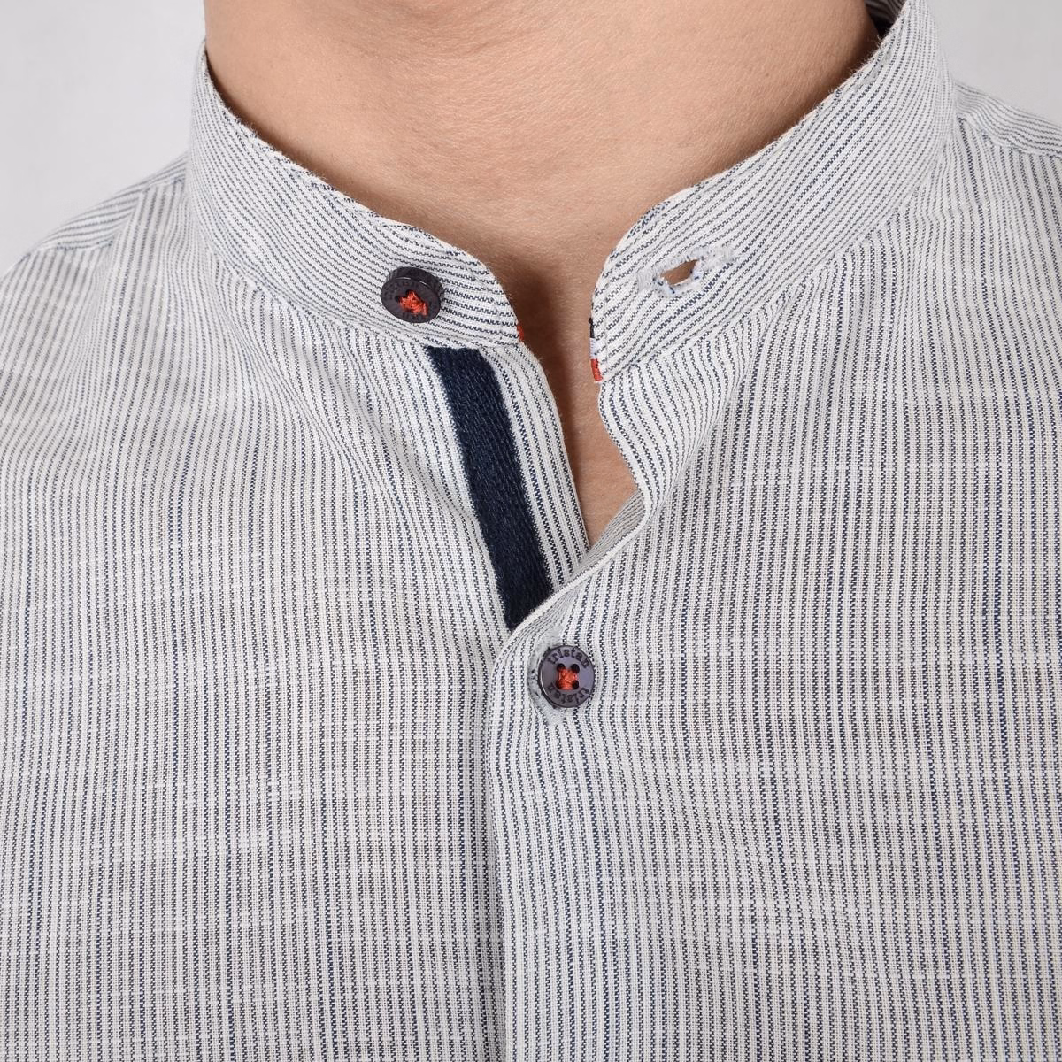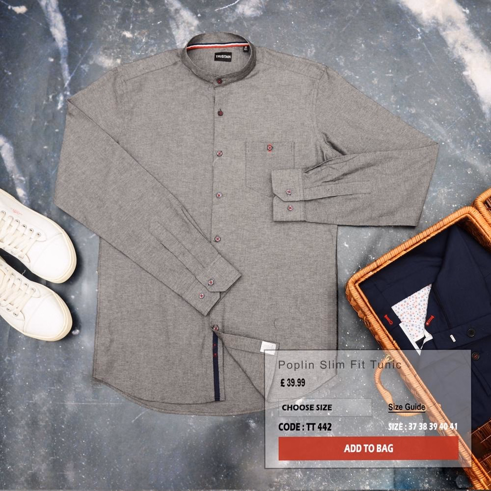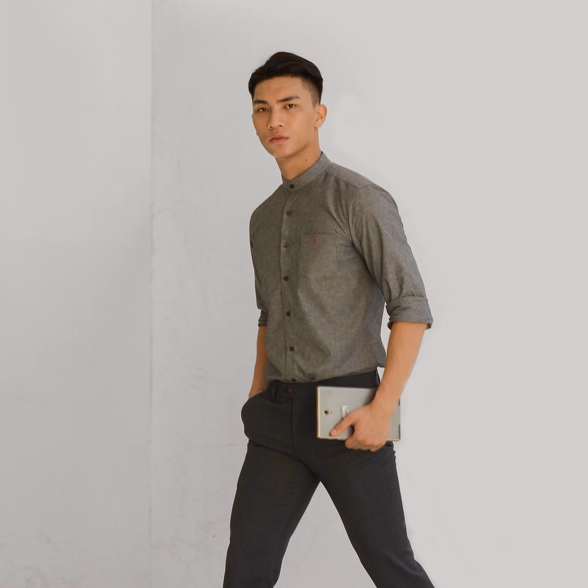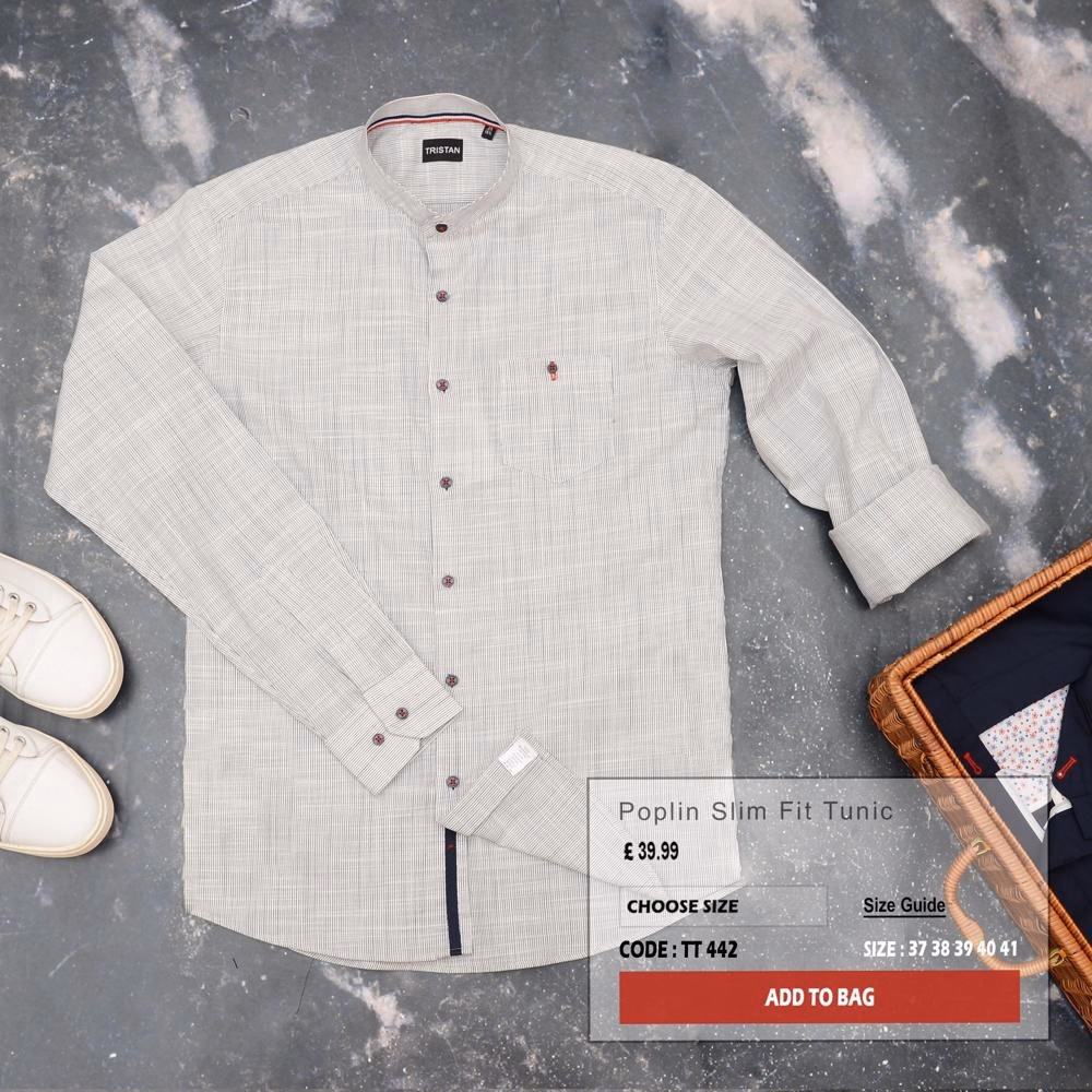 ● Kiểu dáng : Slim fit dáng ôm, cổ tàu, tay dài. Khuy cúc cổ điển.