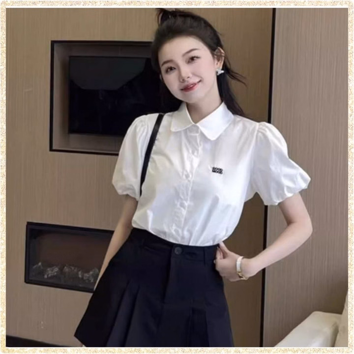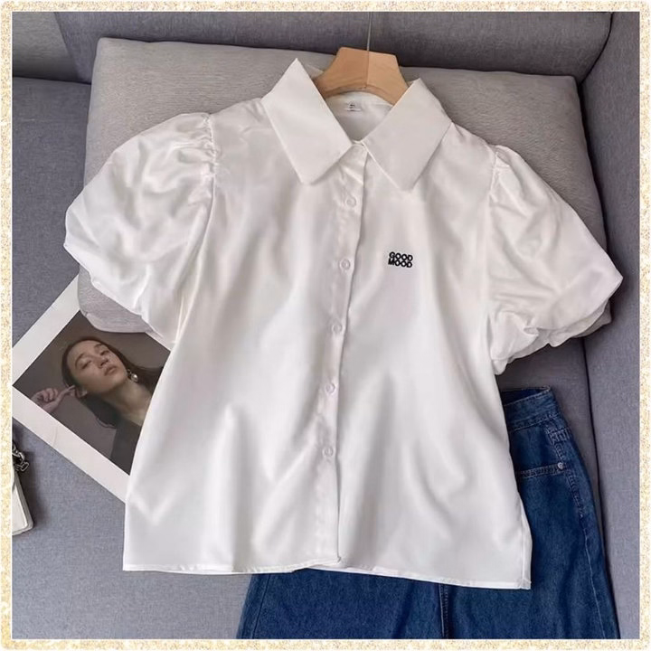 Áo Sơ Mi Cộc Tay Bồng Thêu Họa Tiết Chữ Good Mood Cực Xinh Dành Cho Bạn Nữ – Chipxinhxk