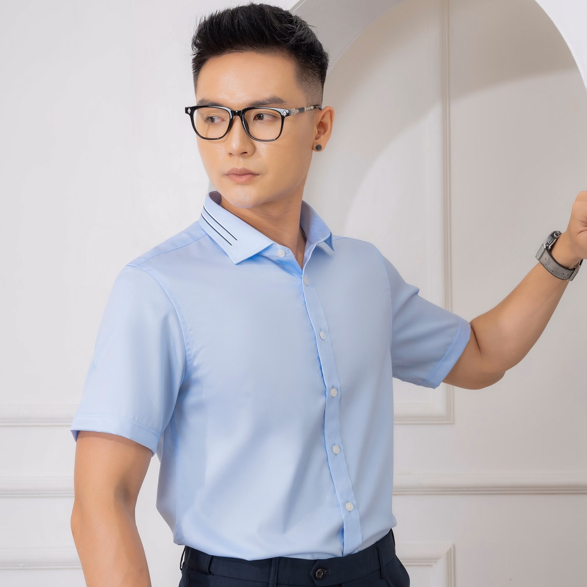Áo Sơ Mi Cộc Tay Cotton Chống Nhăn Blue Alg-C111 – Aligro