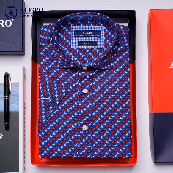 Áo Sơ Mi Cộc Tay Nam Công Sở Aligro Hoạ Tiết Con Cua Dáng Custom Algs-C86 – Aligro