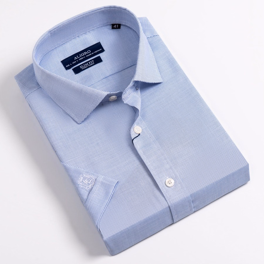 Áo Sơ Mi Cộc Tay Trắng Chấm Xanh Algs-C115 – Aligro