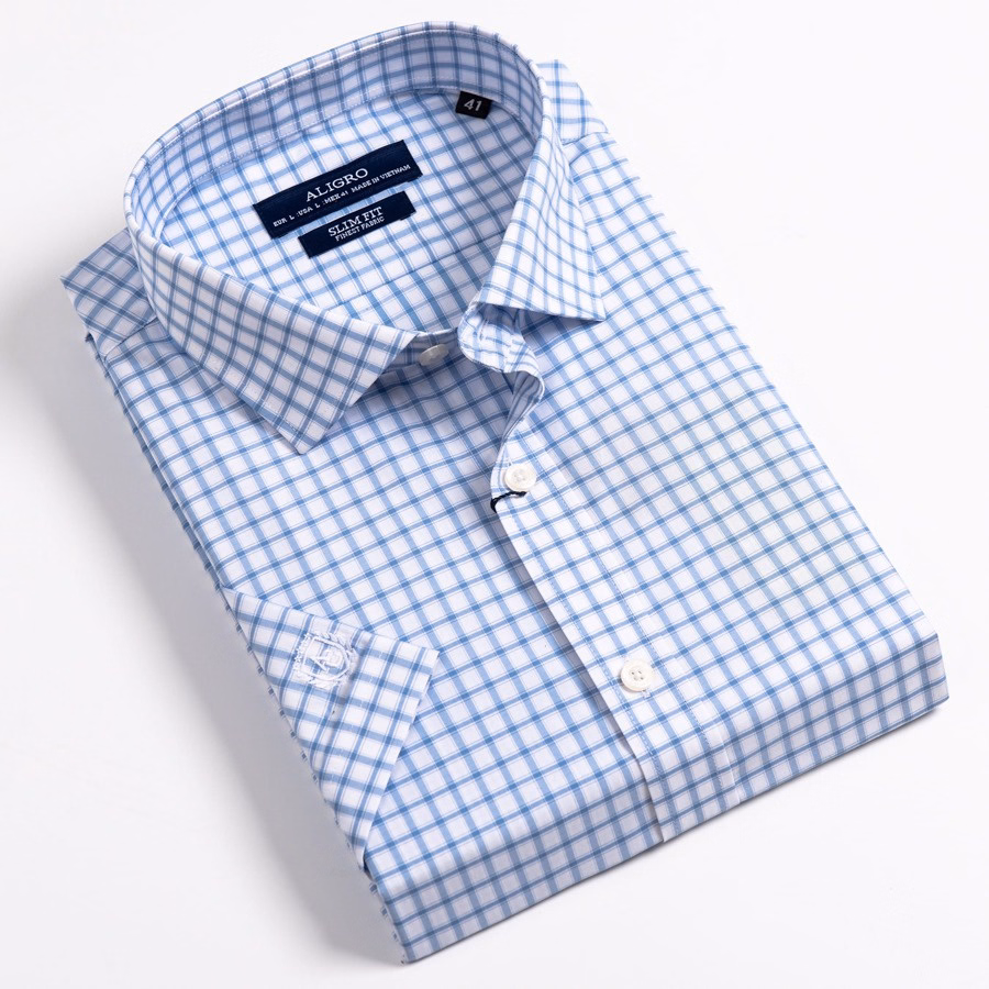 Áo Sơ Mi Cộc Tay Trắng Kẻ Caro Xanh Algs-C116 -Aligro