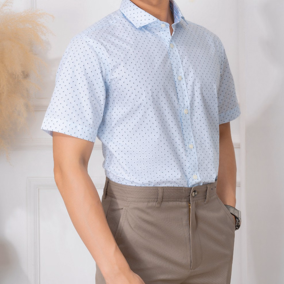 Áo Sơ Mi Cộc Tay Xanh Họa Tiết Algs-C83 – Aligro