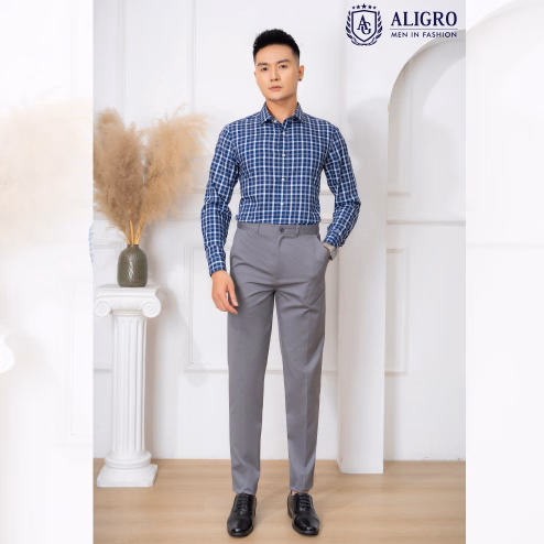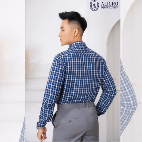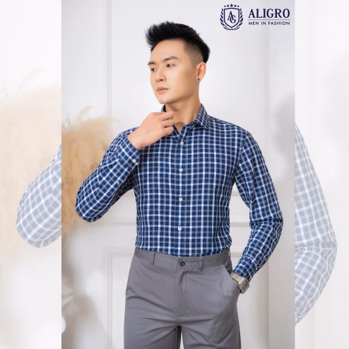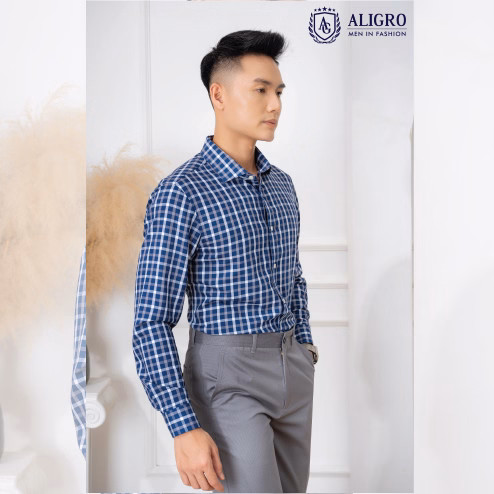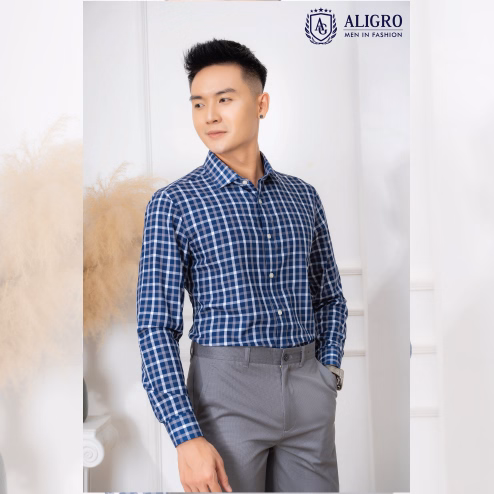 Tên sản phẩm: Áo Sơ Mi Dài Tay Bamboo Kẻ Caro Navy – Aligro