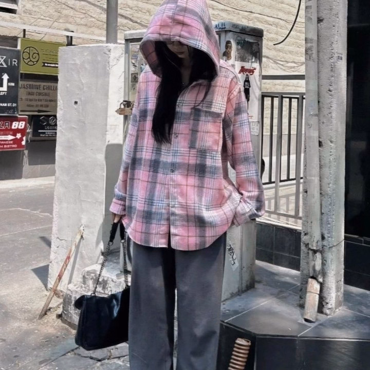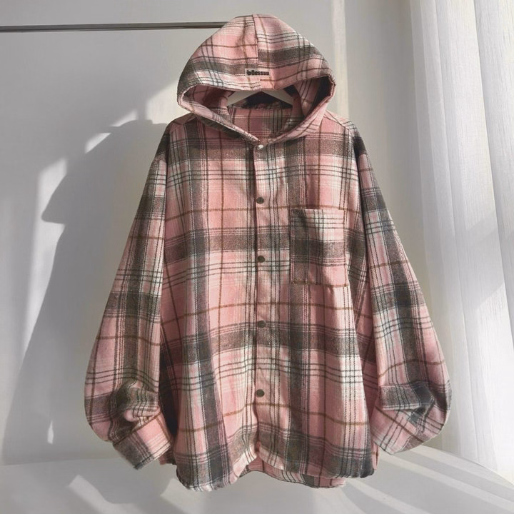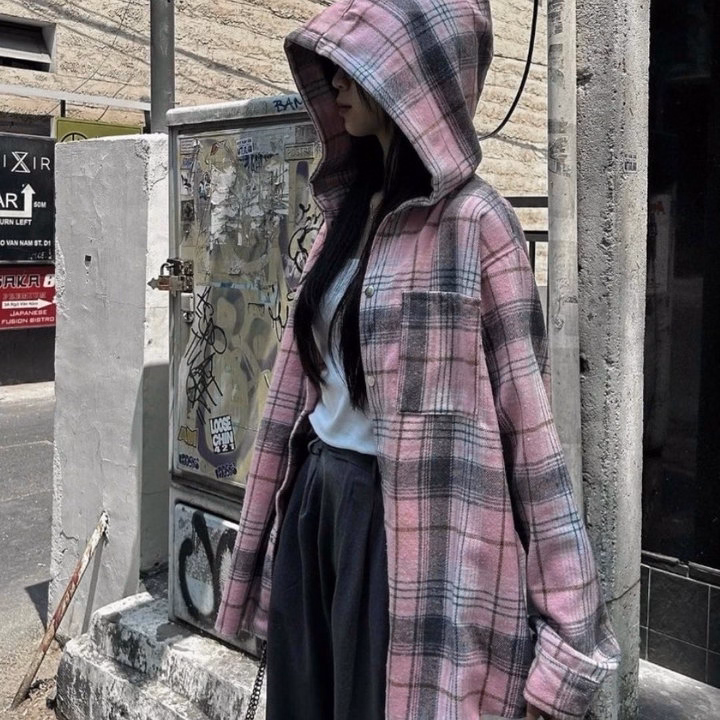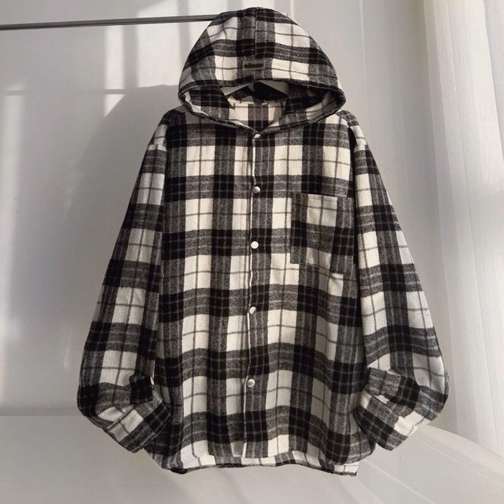 Áo Sơ Mi Flannel Shirt Kẻ Caro Dài Tay Có Mũ Form Rộng Unisex Nam Nữ Úniex Chống Nắng Cúc Bấm Nam Nữ Mặc Đẹp U63