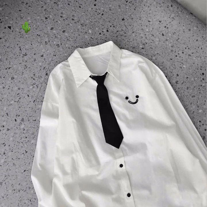Áo Sơ Mi Form Rộng Thêu Hoạ Tiết Kèm Cà Vạt – Lê Phương Boutique