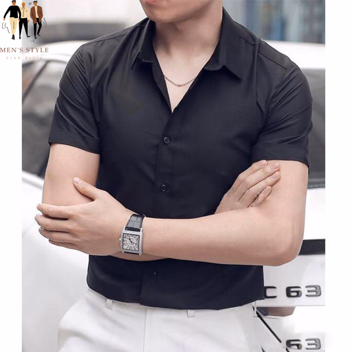 Áo Sơ Mi Nam Cộc Tay Dáng Hàn, Dáng Slim, Chất Poly Chéo – Men’S Style