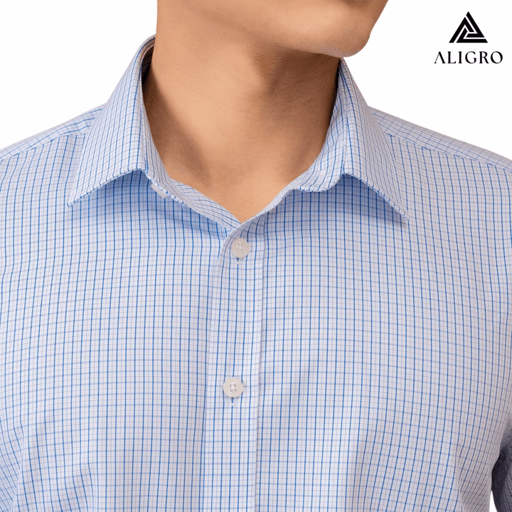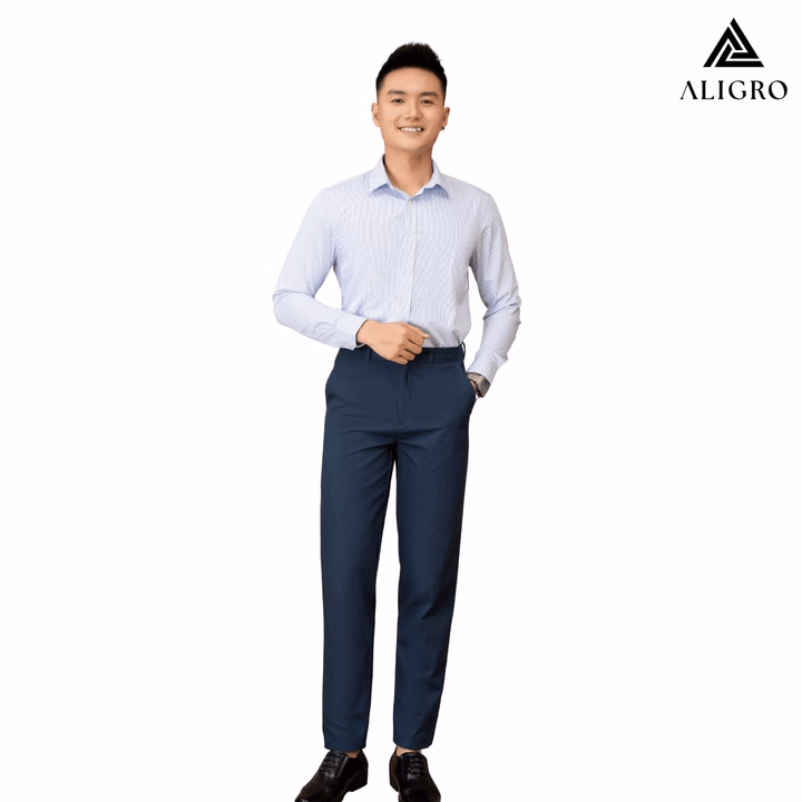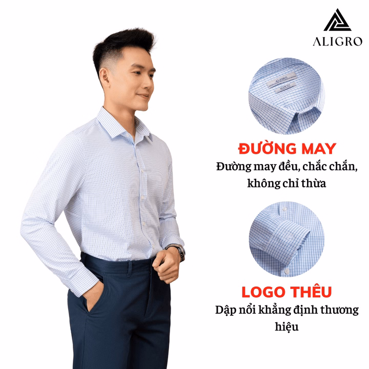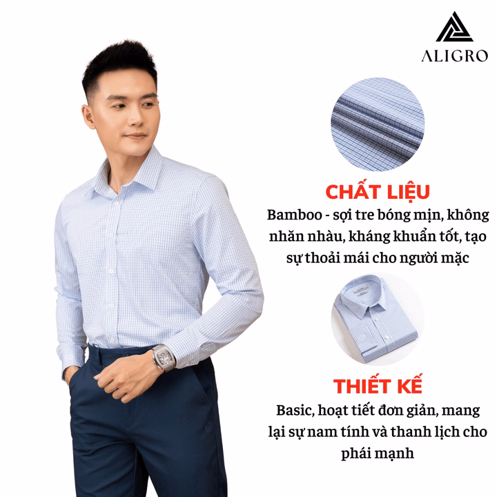 Áo Sơ Mi Nam Dài Tay Aligro 100% Chất Liệu Bamboo Sợi Tre Sọc Caro Màu Xanh Cổ Bẻ Dáng Ôm Algs220 – Aligro