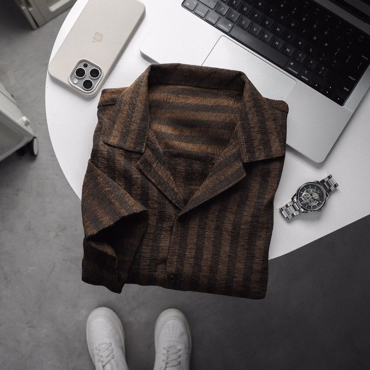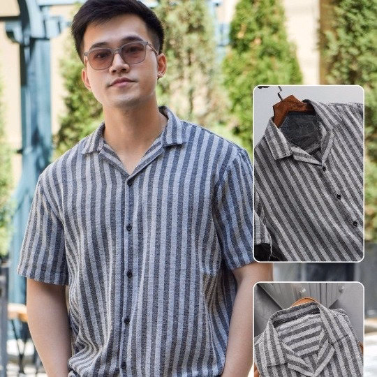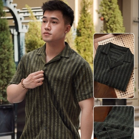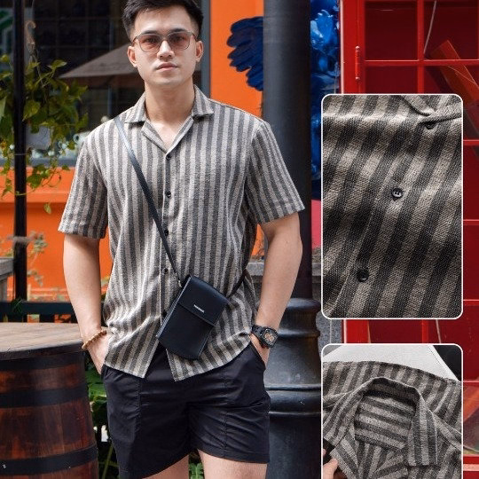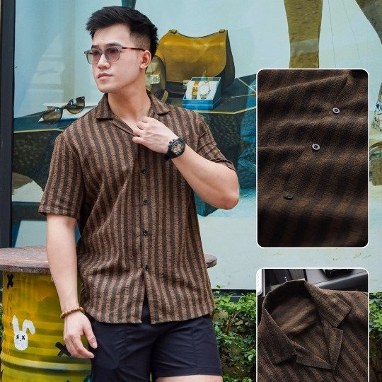Sơ mi nam kẻ sọc Kelly Tuto5 Menswear phong cách trẻ trung, chất đũi thô mềm mát thấm hút mồ hôi