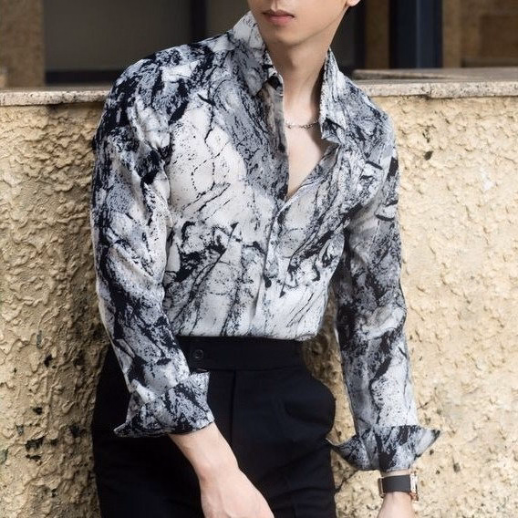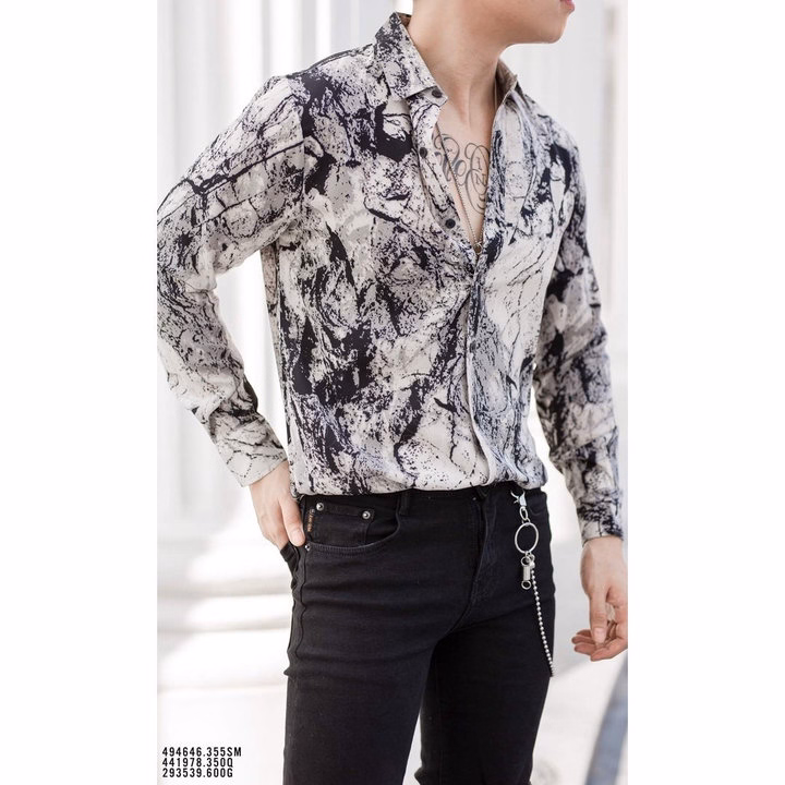 Với hoạ tiết loang mềm mịn, chiếc sơ mi này không chỉ thu hút mắt bởi vẻ đẹp tinh tế mà còn tạo điểm nhấn riêng biệt trong bất kỳ bữa tiệc hay sự kiện nào. Sự kết hợp giữa sự tinh tế và cá tính mạnh mẽ khiến bạn nổi bật giữa đám đông.