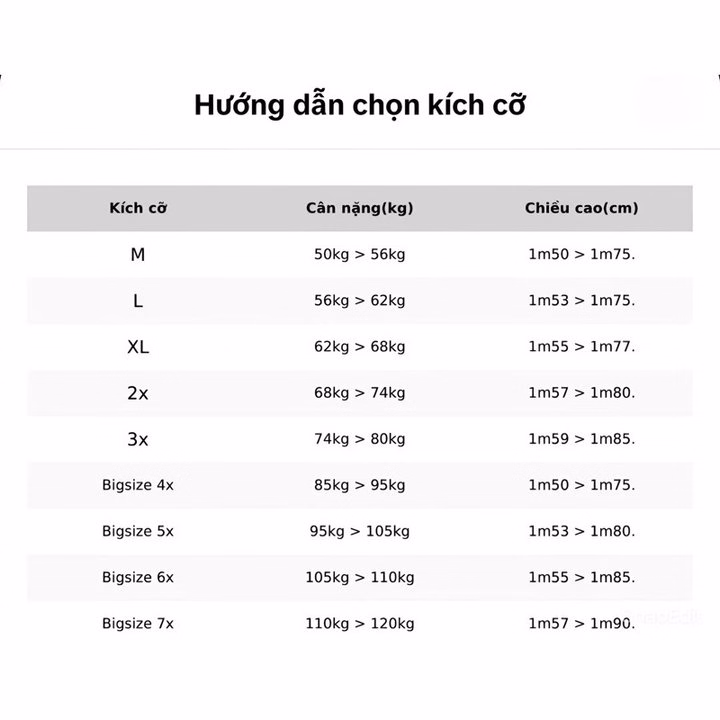 – Tham khảo chọn size theo bảng quy đổi kích cỡ đính kèm.