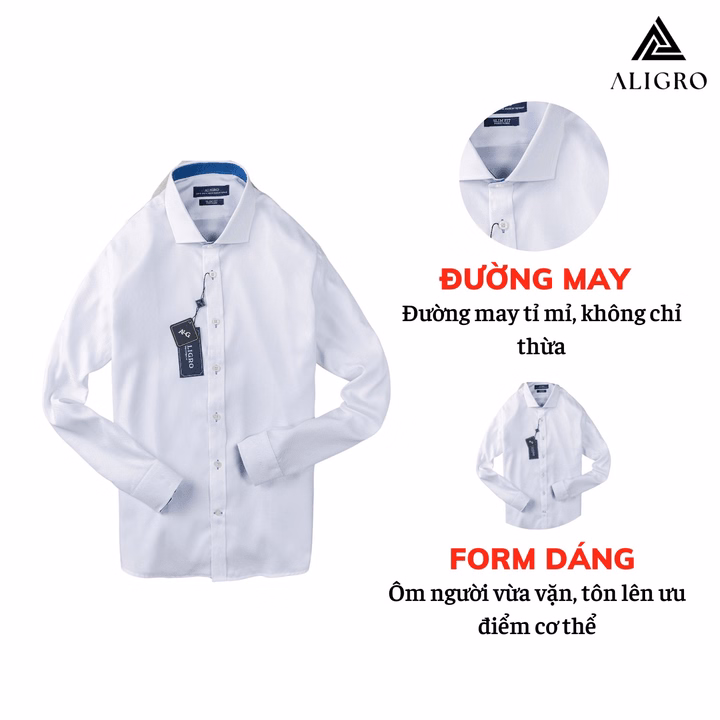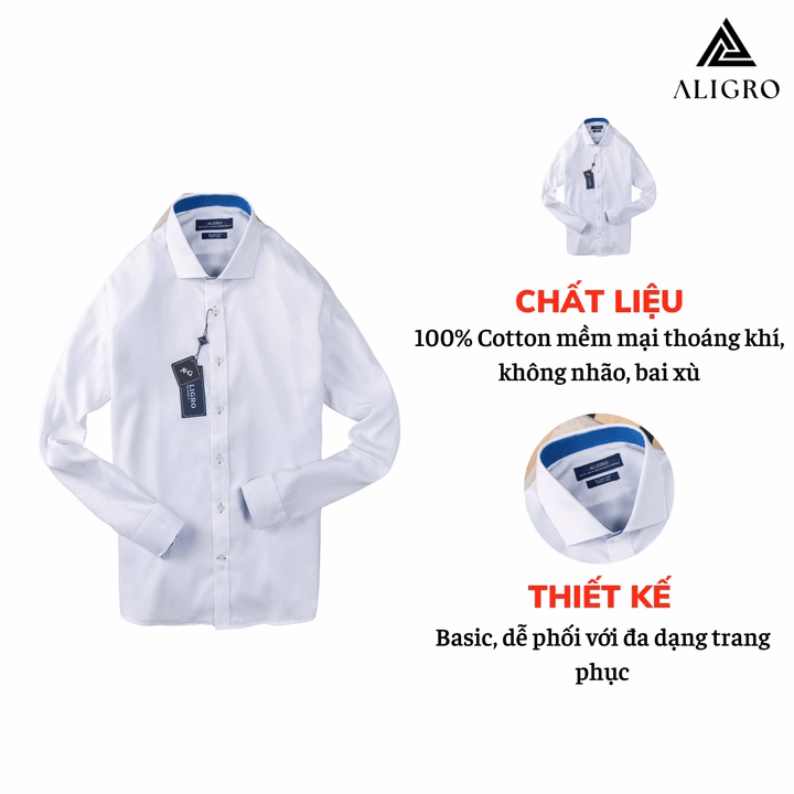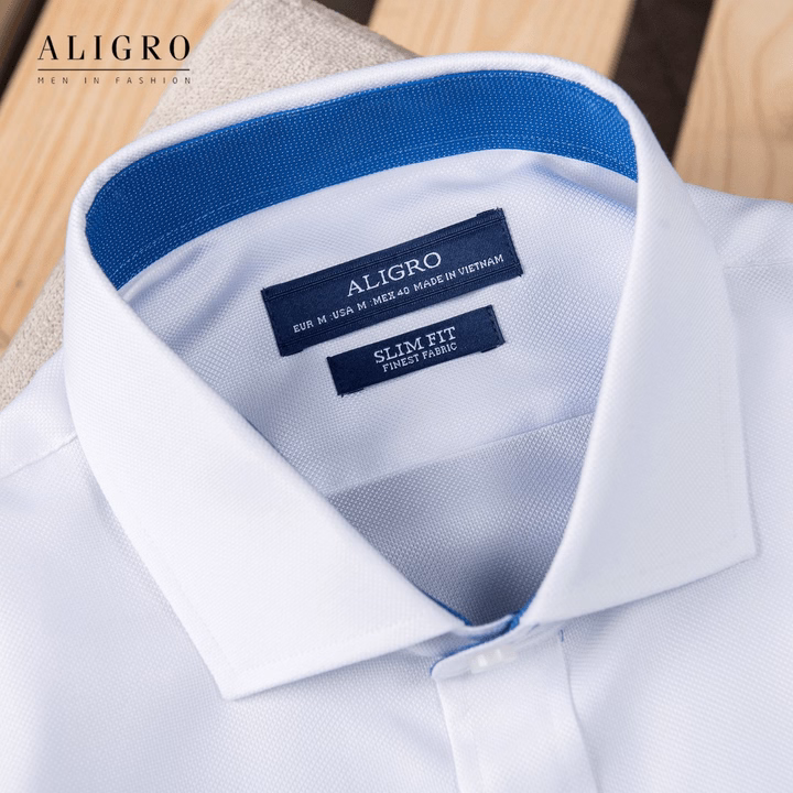Áo Sơ Mi Nam Trắng Dài Tay Phối Cổ Xanh Aligro Dáng Slimfit Mã Algs190 – Aligro