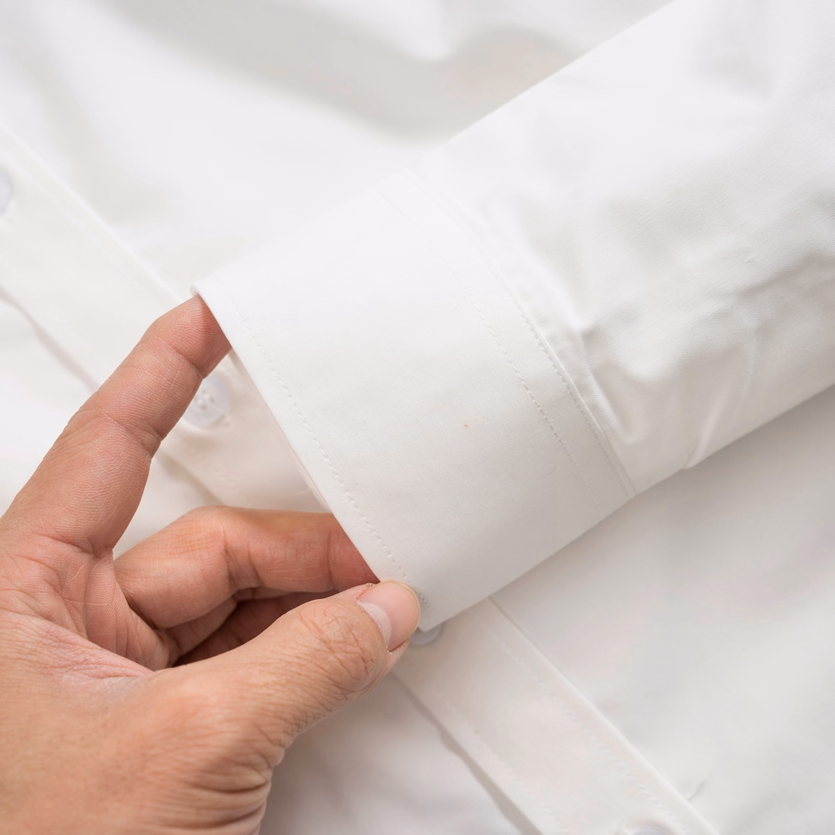 -Tay áo: Kéo căng ống tay áo sơ mi và là theo nếp li. Là cổ tay từ bên trong cả 2 bên phải trái