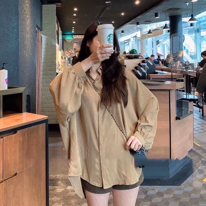 Áo Sơ Mi Tay Phồng Nữ Màu Nâu