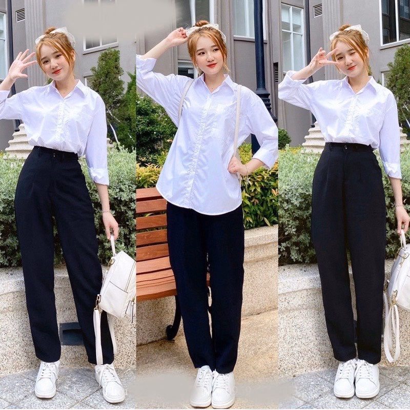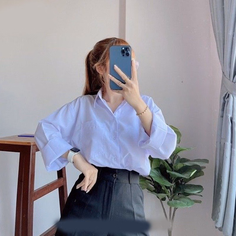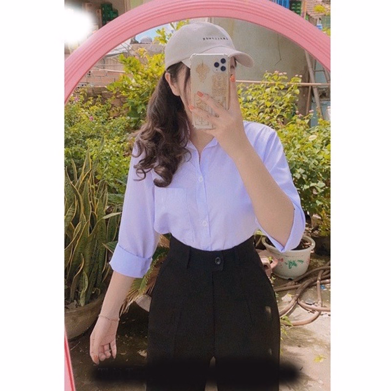 • Mô Tả Sản Phẩm: Áo sơ mi trắng Nữ, Áo sơ mi Dài Tay có Túi