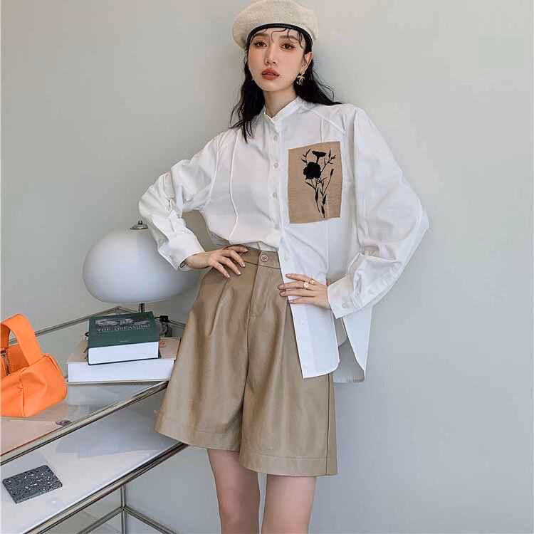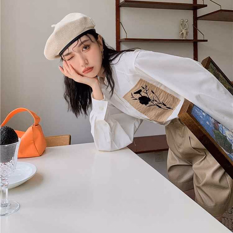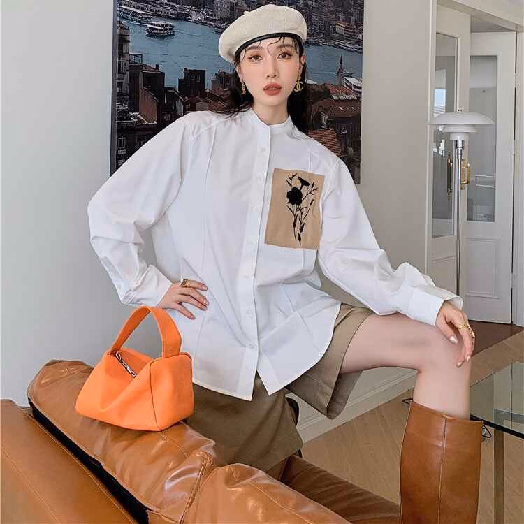 Áo Sơ Mi Trắng Thêu Mảnh Vải Hoa – Mushroom Lee