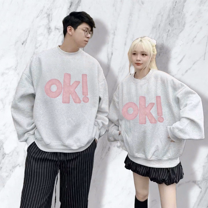 Áo Sweater Cặp Đôi Vải Nỉ Dày Dặn Bo Dài Thêu Chữ Okk Form Boxy Tay Phồng Unisex Nam Nữ M22 – Golden Dream