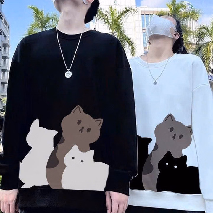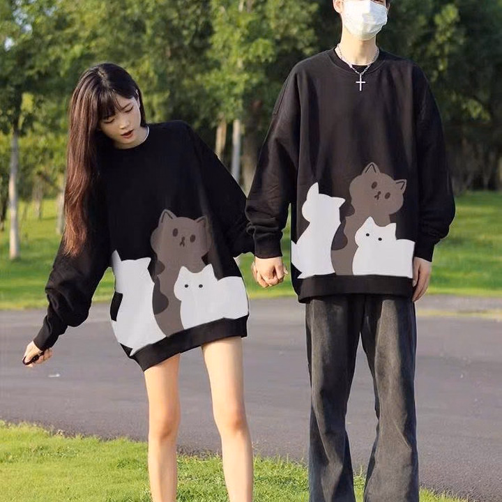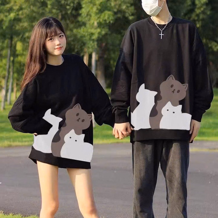 Tên sản phẩm: Áo Sweater Vải Nỉ Ngoại Unisex Nam Nữ In Hình 3 Chú Mèo Siêu Đẹp Cho Các Cặp Đôi Tp342 – Phương Store