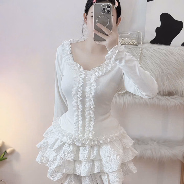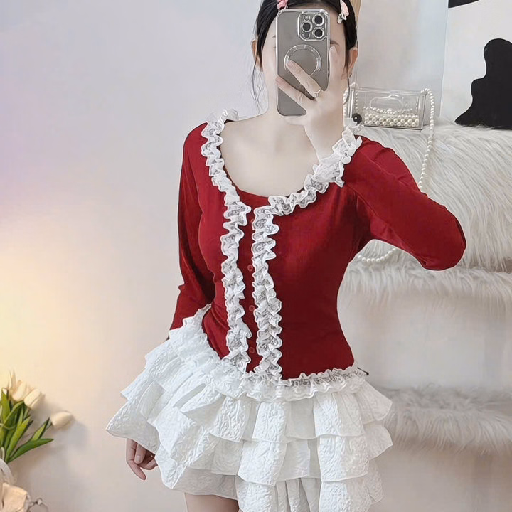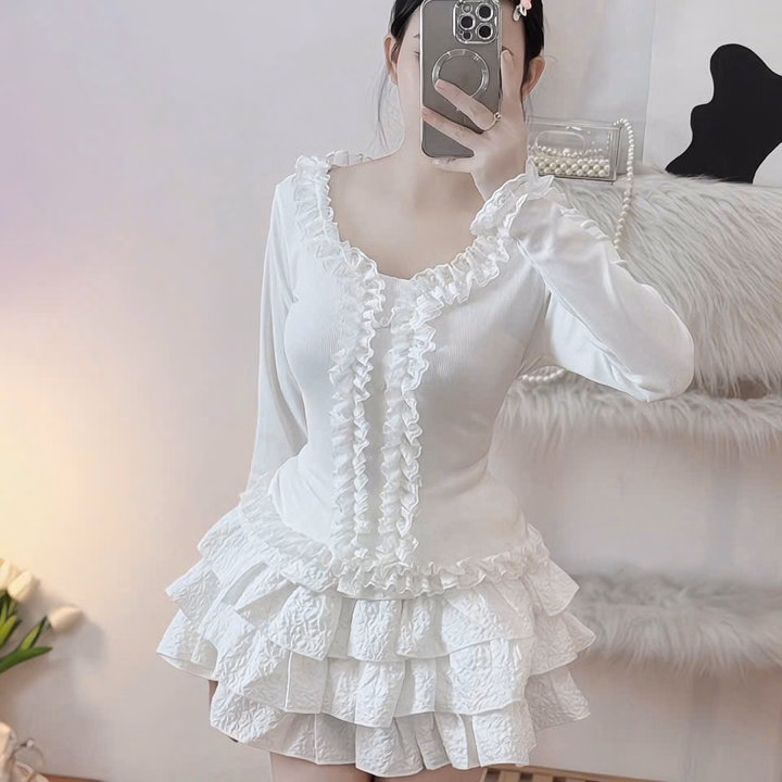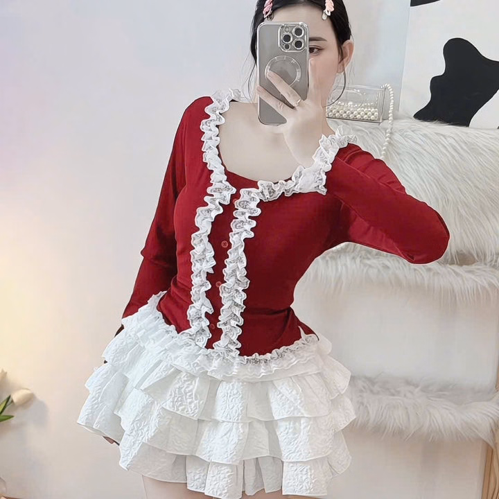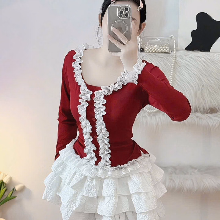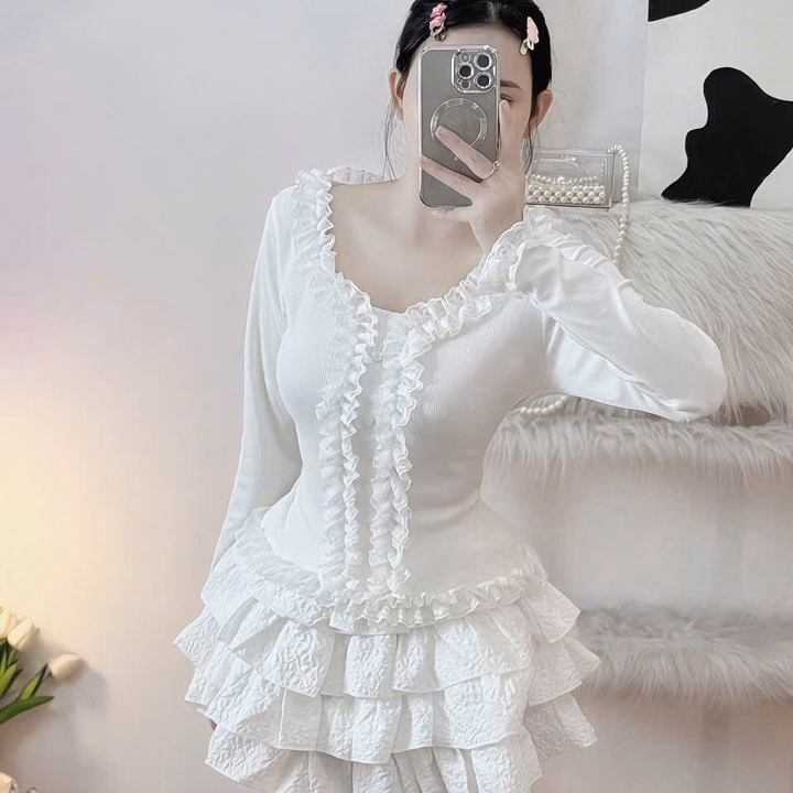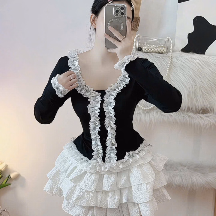 Áo Tay Dài Viền Ren – Lê Phương Boutique