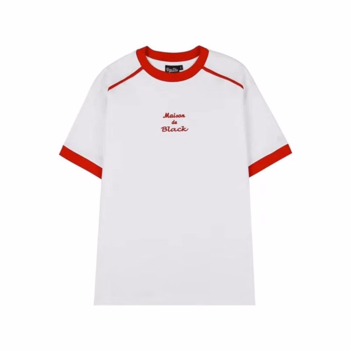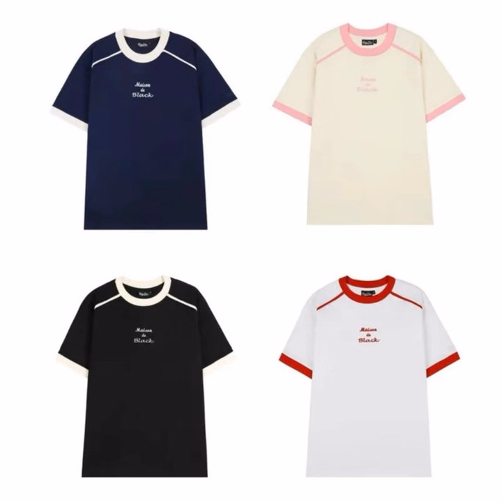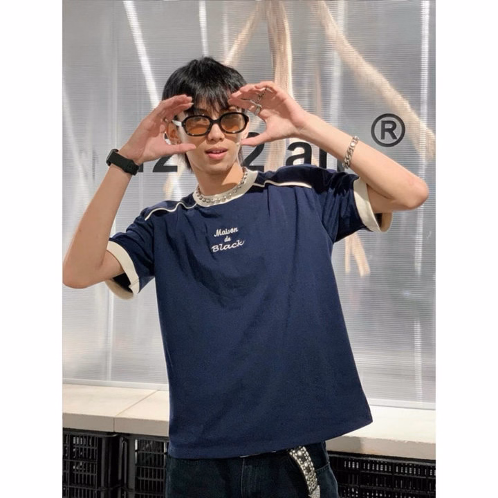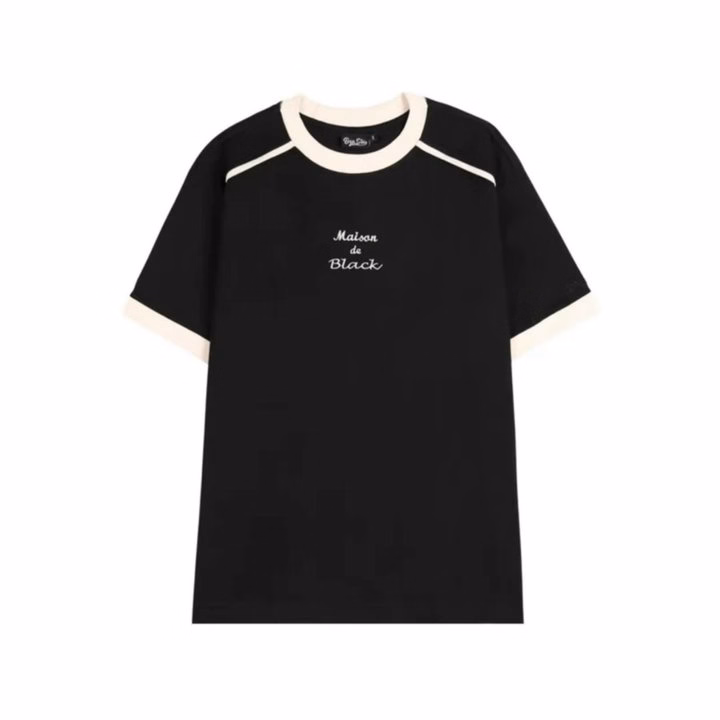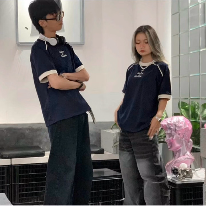 Áo Thun Cặp Đôi Nam Nữ Cổ Tròn Thêu Black Chất Thun Cotton Co Giãn Phối Sọc Mí Viền -Htm Fashion