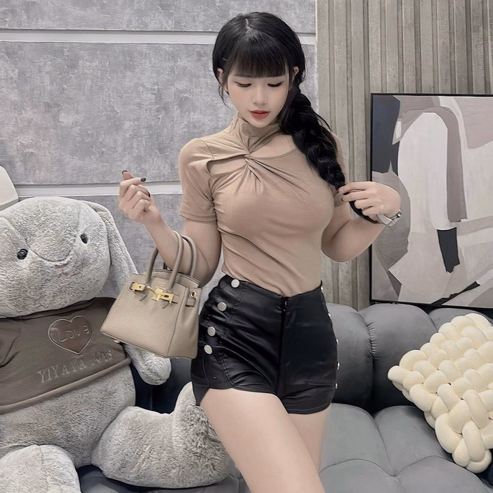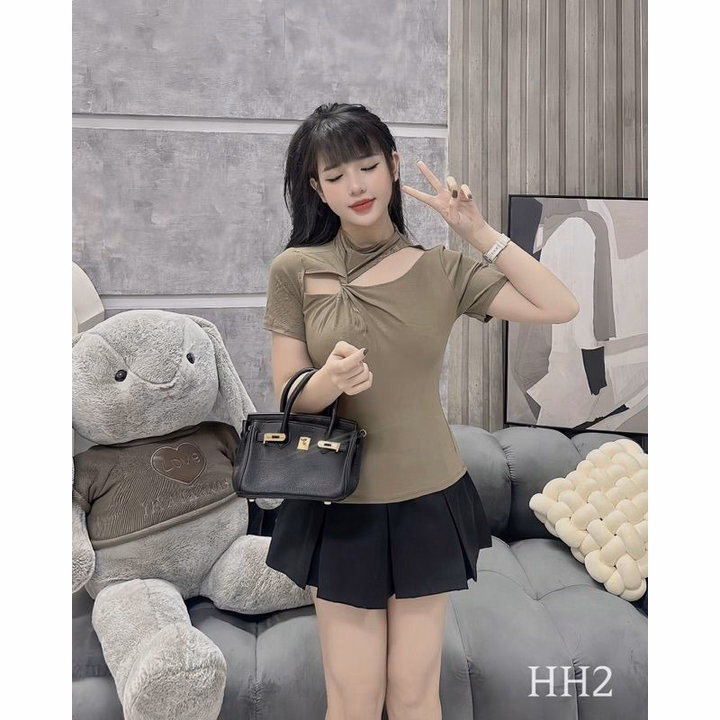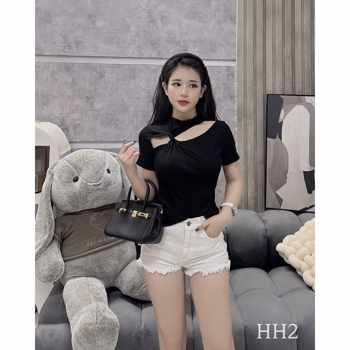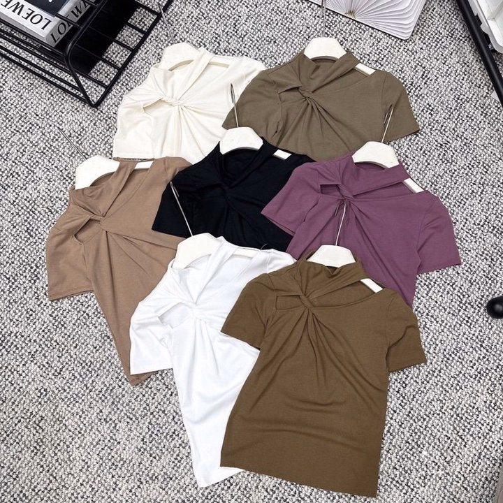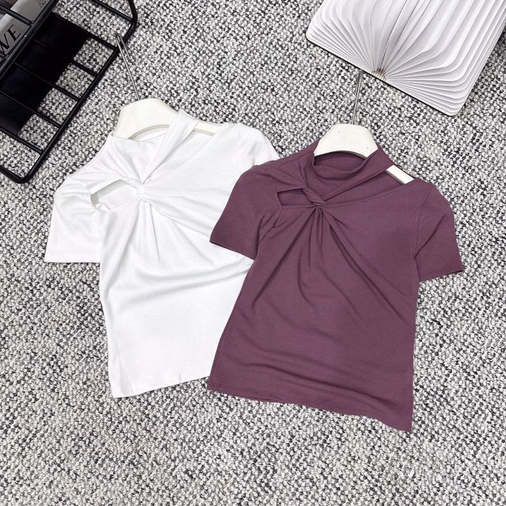 Áo Thun Cộc Tay Kiểu Dáng Xoắn Kép Khoét Vai Sang Chảnh Dành Cho Bạn Nữ Slcxa252