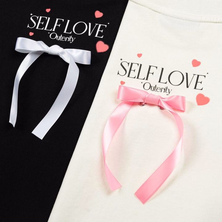 Áo Thun Cotton Nữ Phối Nơ In Chữ Seft Love 2 Màu Trắng Đen Tp60 – Golden Dream