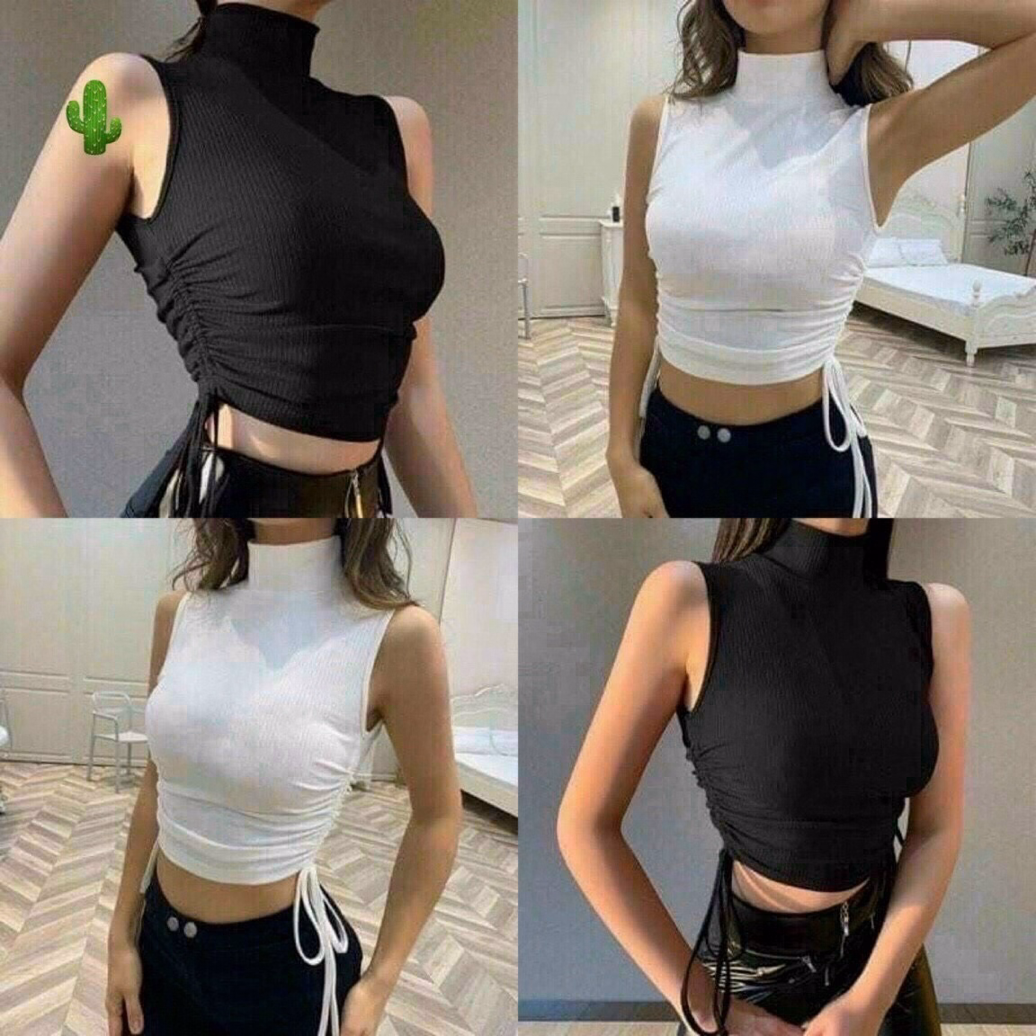 Áo Thun Croptop Cổ Lọ Dây Rút Eo – Ausa House