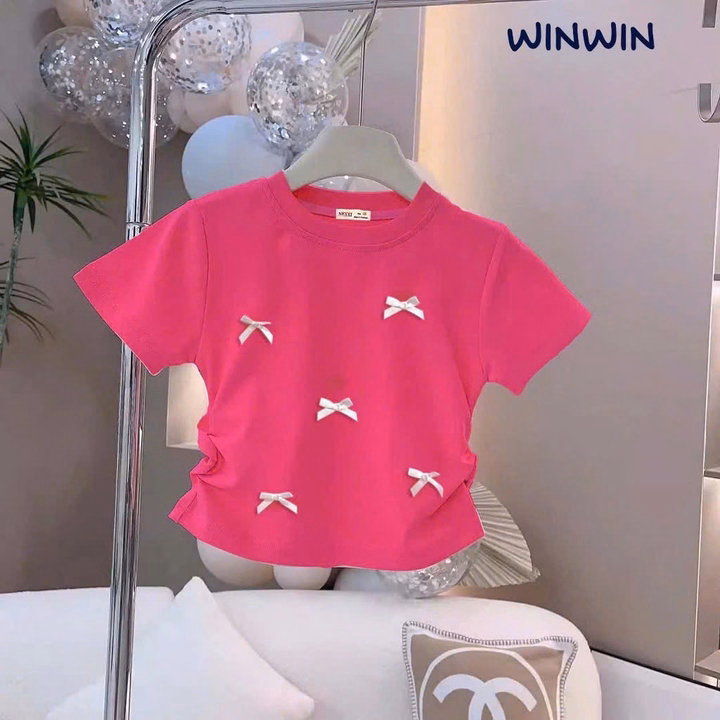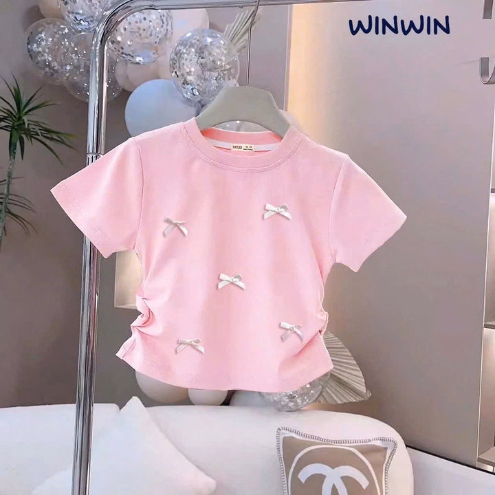 Áo Thun Croptop Kiểu Rút Eo Đính Nơ Nhí Hottrend Từ 8-45Kg Bé Gái