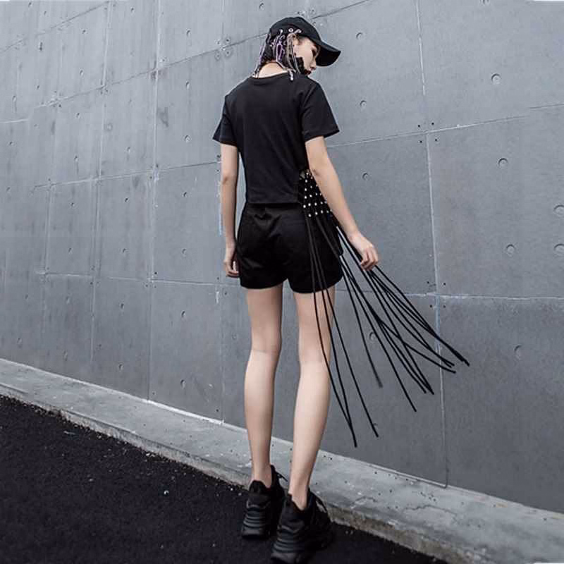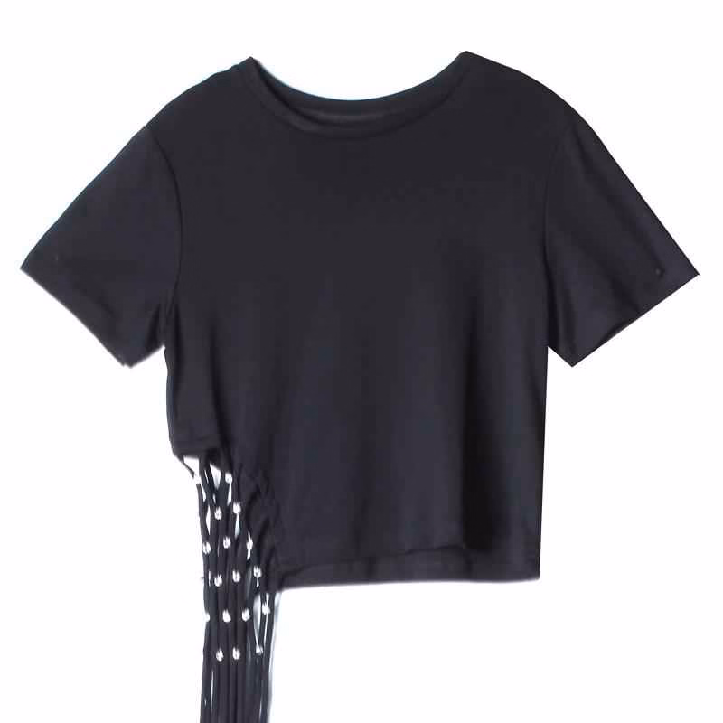 Áo thun sợi tassel màu đen croptop đính hạt đẹp mắt, phối cùng quần short phong cách cá tính. Chất liệu mềm mát, mặc thoải mái.