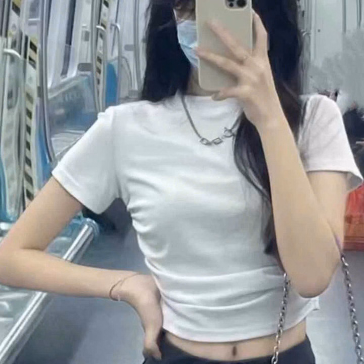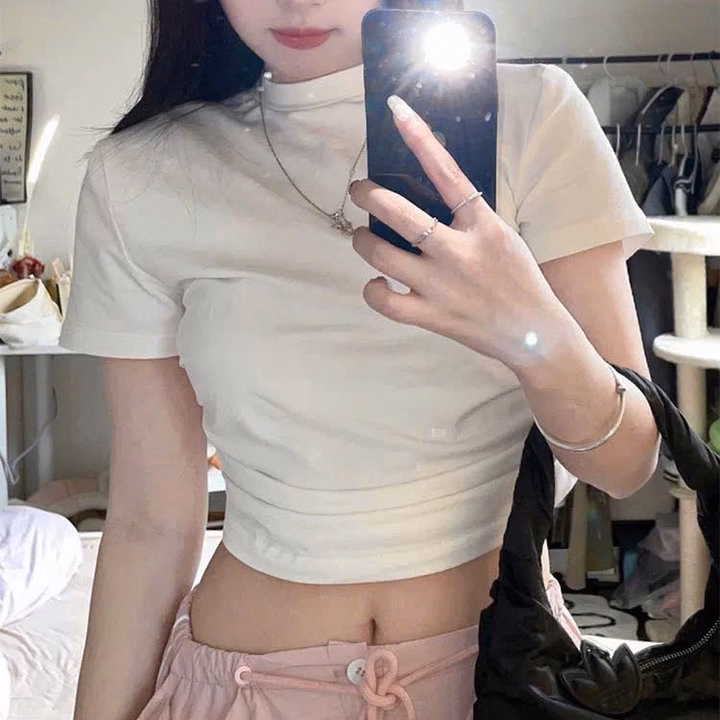 Áo Thun Croptop Trơn Bassic Dáng Ngắn Cộc Tay Mùa Hè