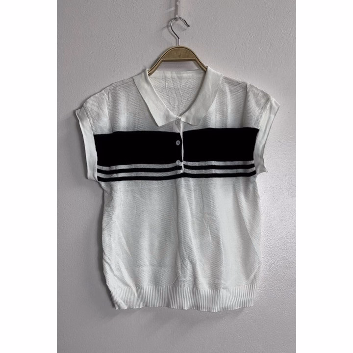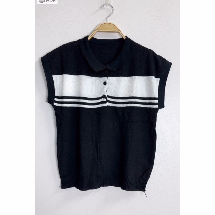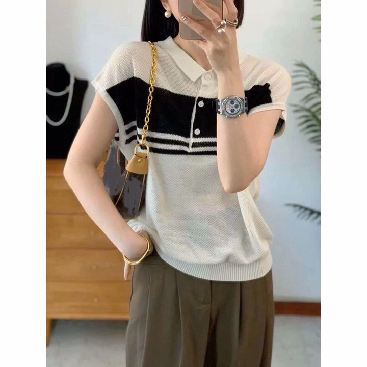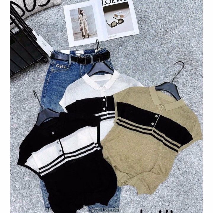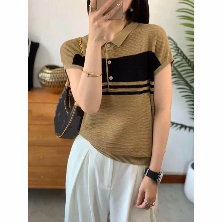 Áo Thun Dệt Kim Tay Hến, Kiểu Cổ Sen Phối Họa Tiết Sọc Kẻ To Dành Cho Bạn Nữ – Chipxinhxk