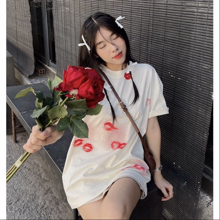 Áo Thun Form Rộng Tay Lỡ Form Unisex Ullzang Siêu Xinh In Hình Trái Tim Be