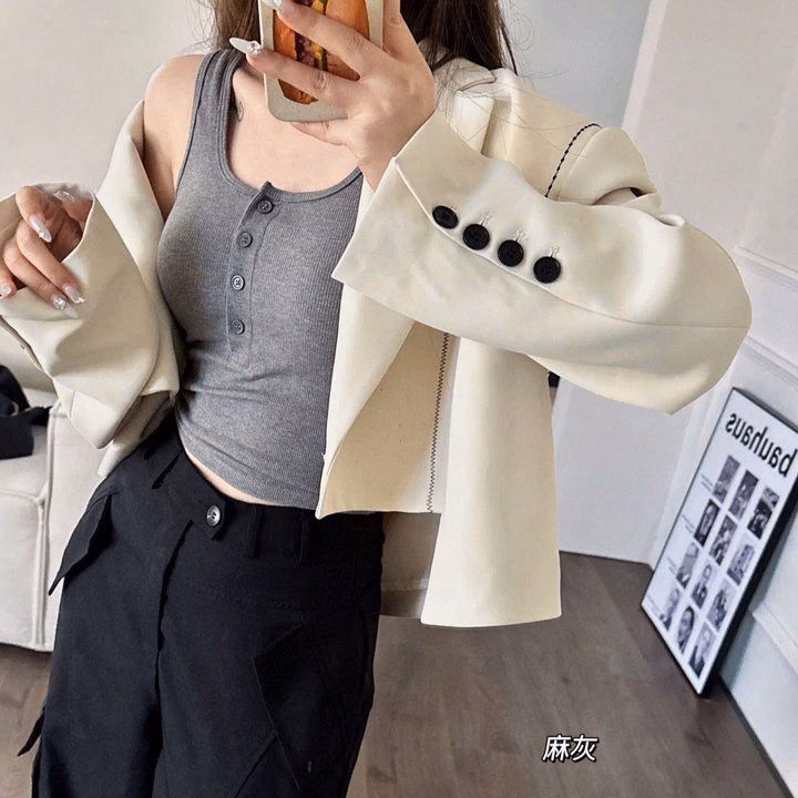 Áo Thun Gân Croptop 5 Nút – Thiết Kế Basic Nữ Tính, Dáng Ôm Tôn Dáng