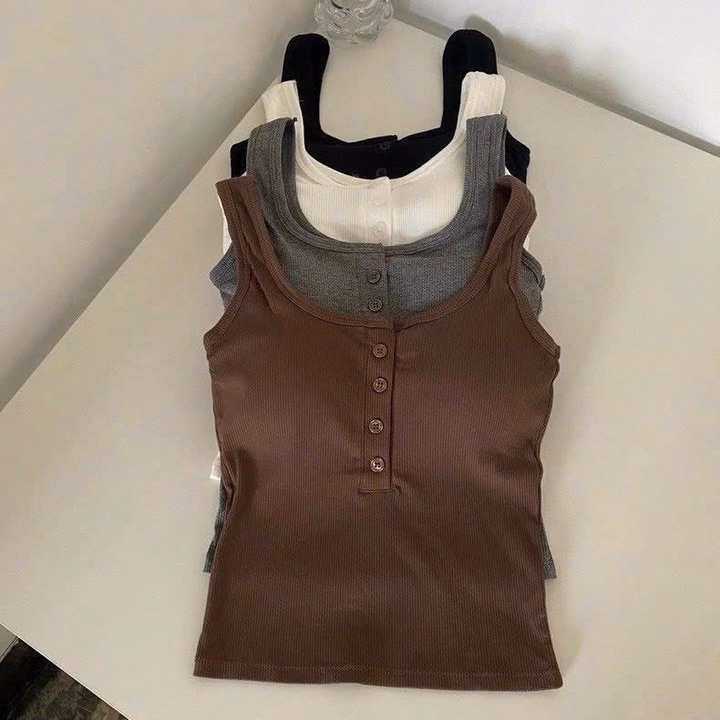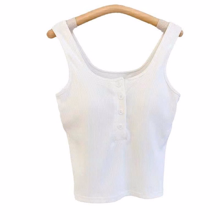 **Thiết kế cổ vuông phối hàng cúc giả 5 nút trước ngực** tạo điểm nhấn đơn giản mà cuốn hút. Chi tiết nhỏ này giúp chiếc áo trở nên ấn tượng hơn mà không cần thêm phụ kiện cầu kỳ. Dây áo bản to giúp che bra tốt và cố định phần vai, tránh tuột trong quá trình di chuyển.