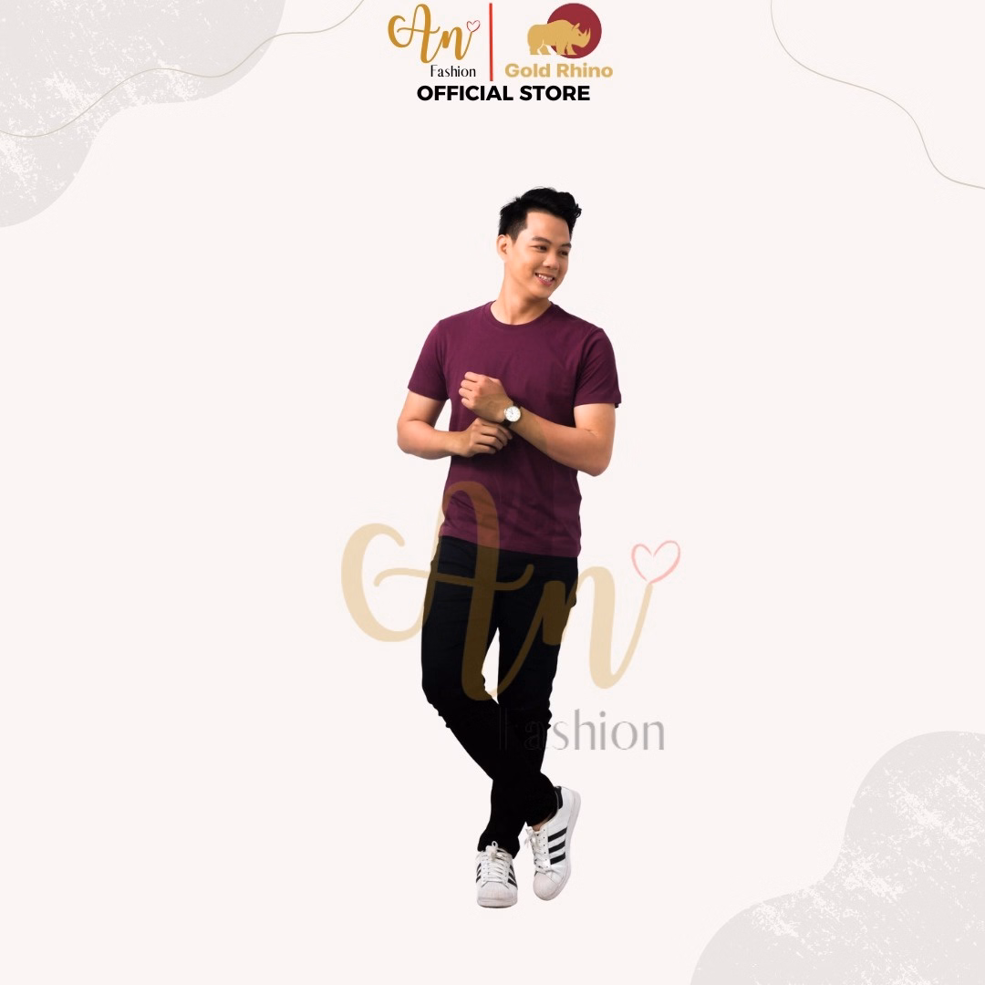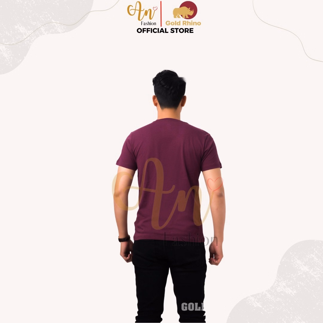 Áo Thun Nam Cổ Tròn Màu Đỏ Mận 100% Cotton Cao Cấp – Gold Rhino
