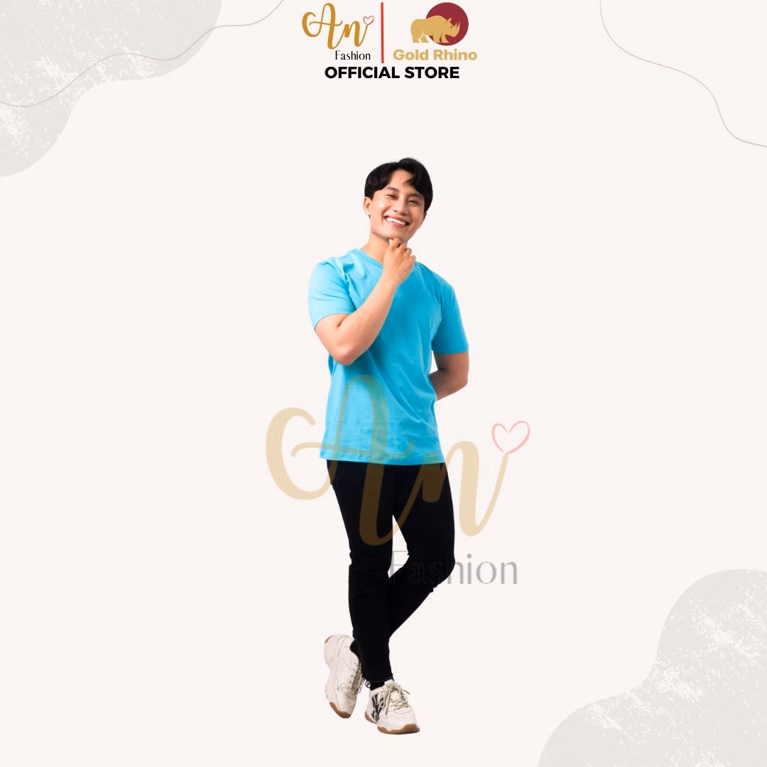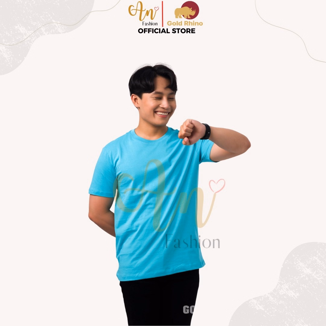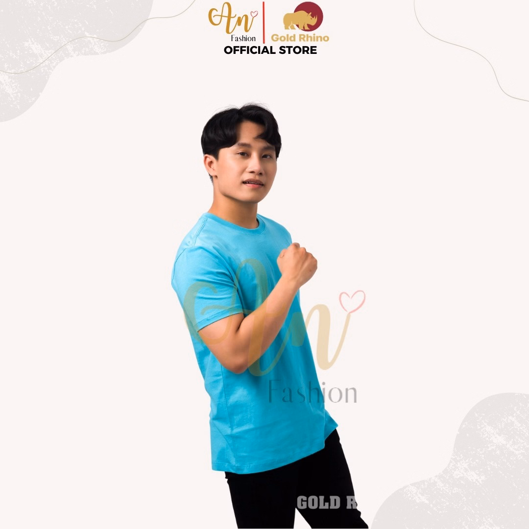 Áo Thun Nam Cổ Tròn Màu Lam Ngọc 100% Cotton Cao Cấp – Gold Rhino