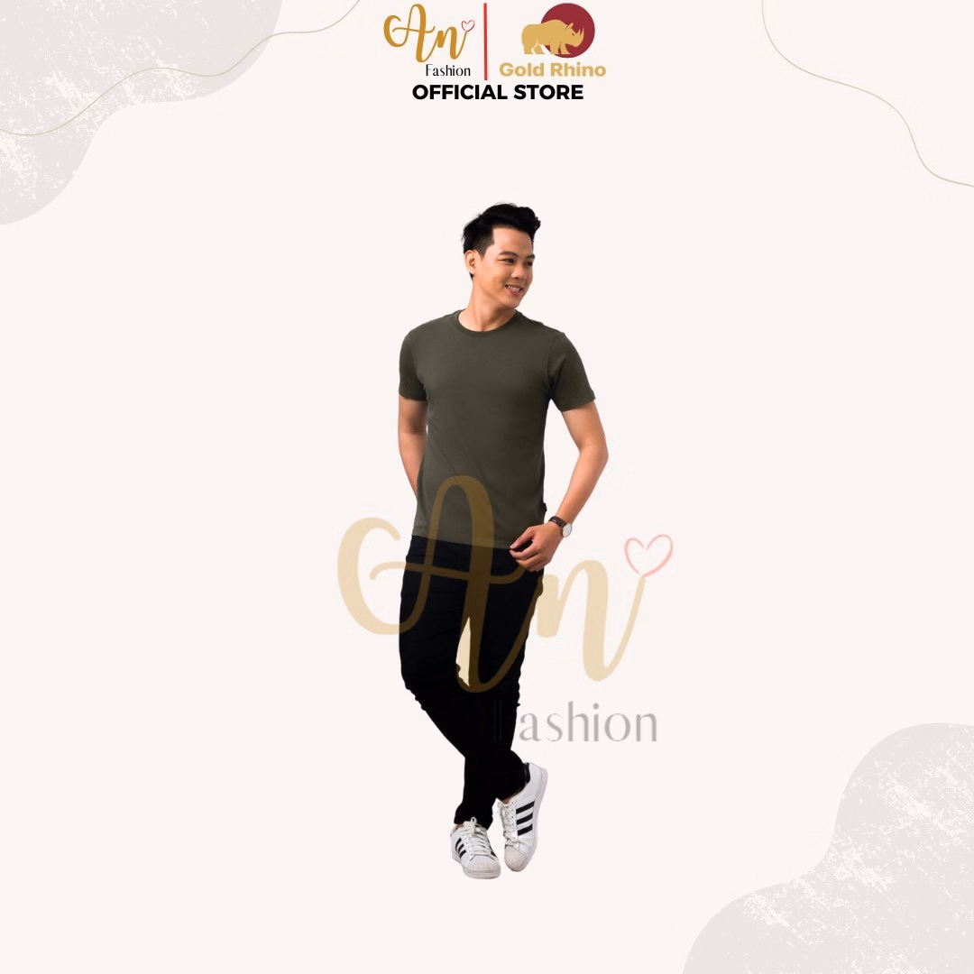 Áo Thun Nam Cổ Tròn Màu Thông Xanh 100% Cotton Cao Cấp – Gold Rhino