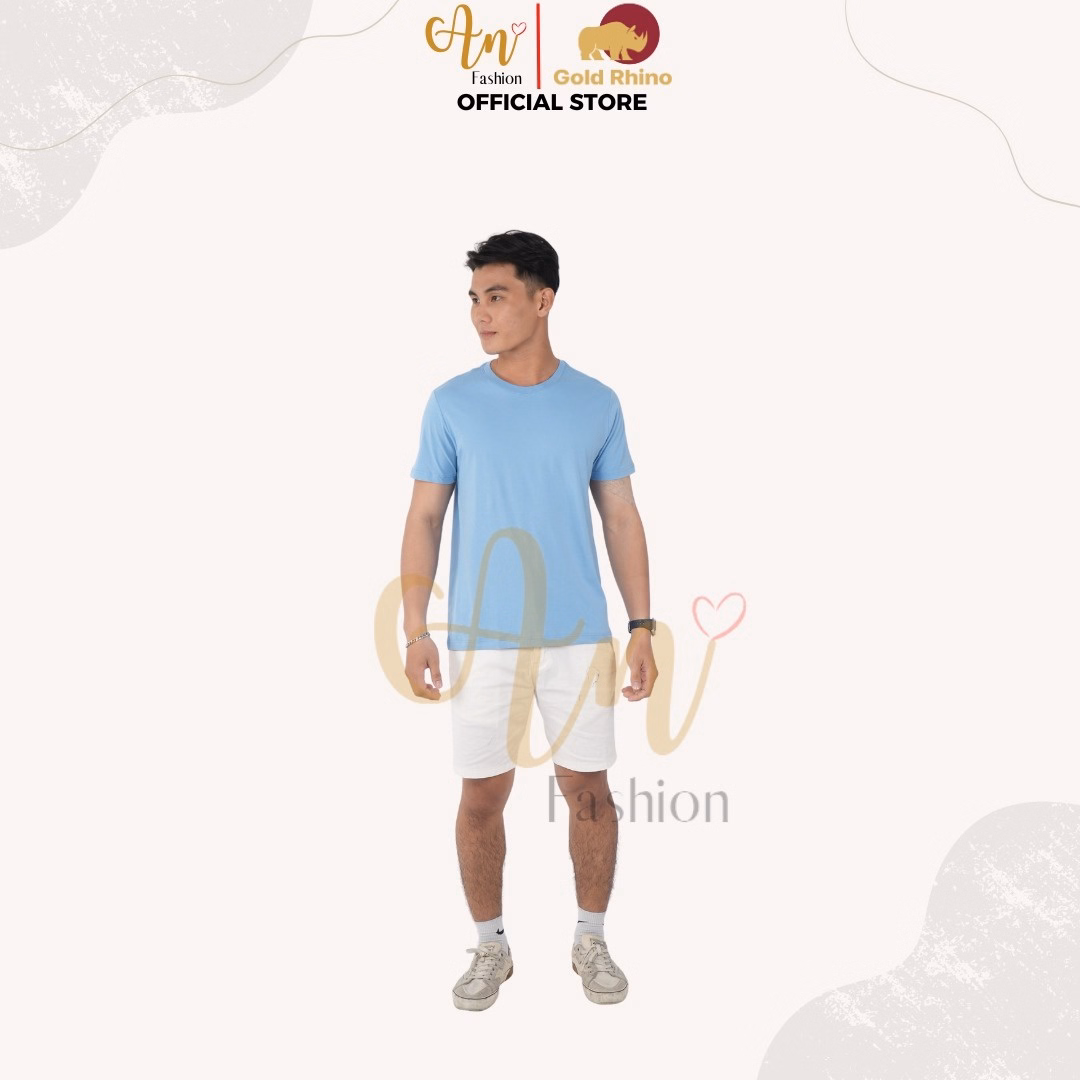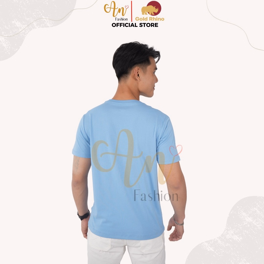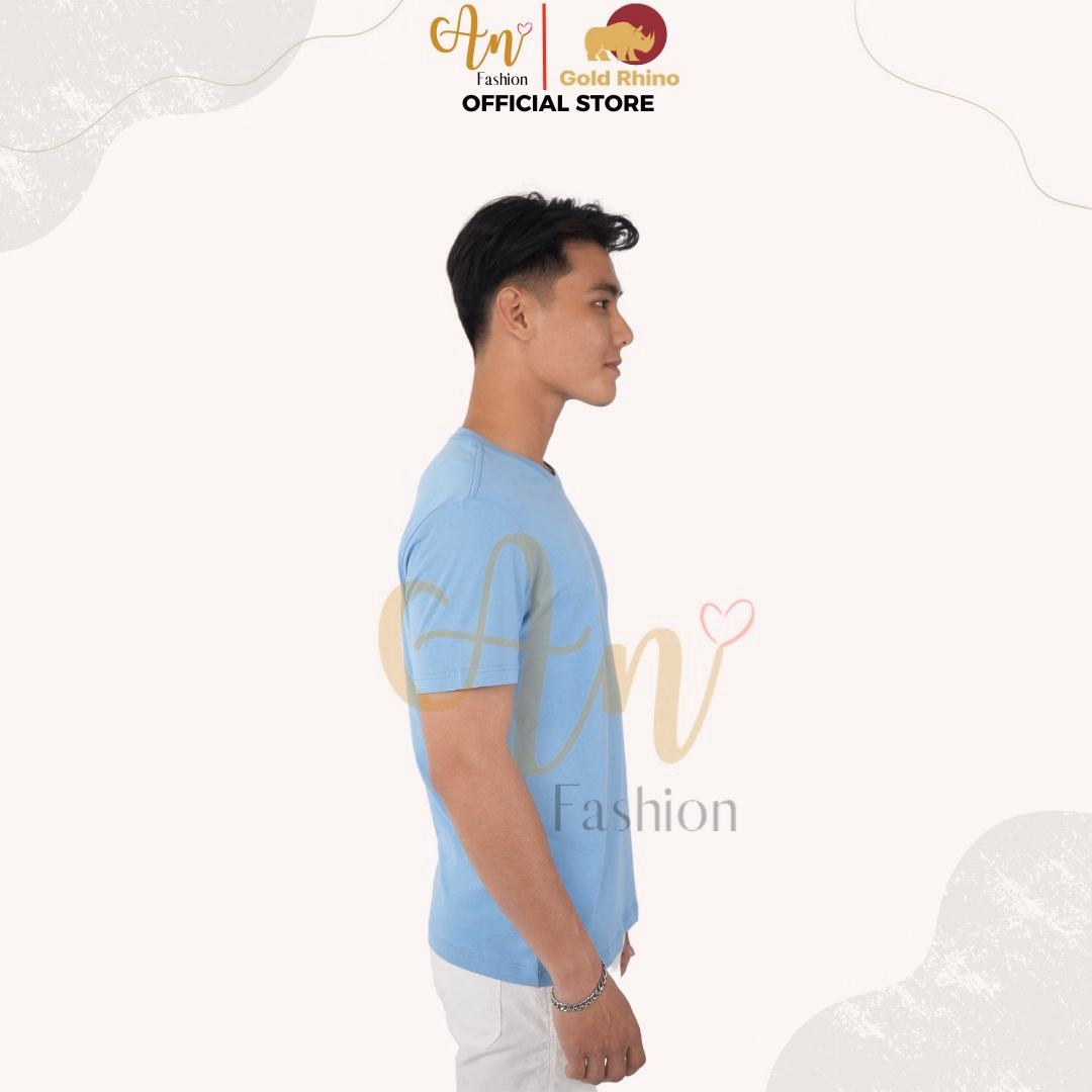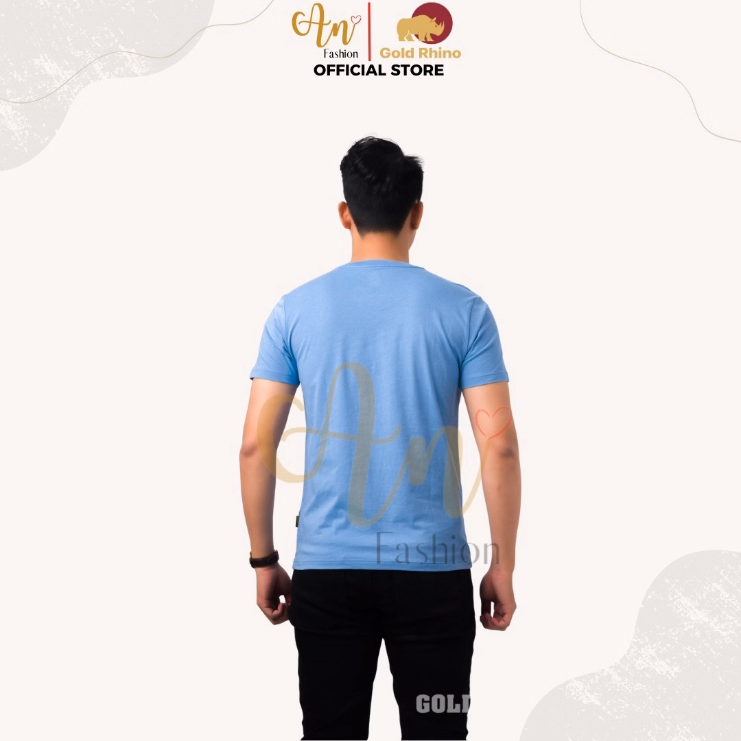 Áo Thun Nam Cổ Tròn Màu Xanh Biển 100% Cotton Cao Cấp – Gold Rhino