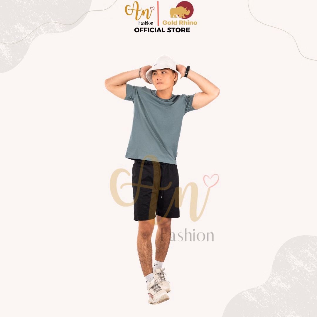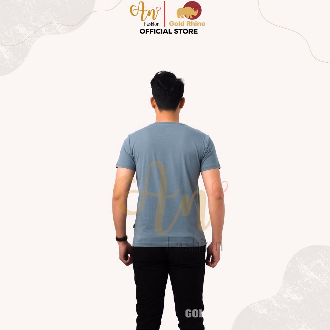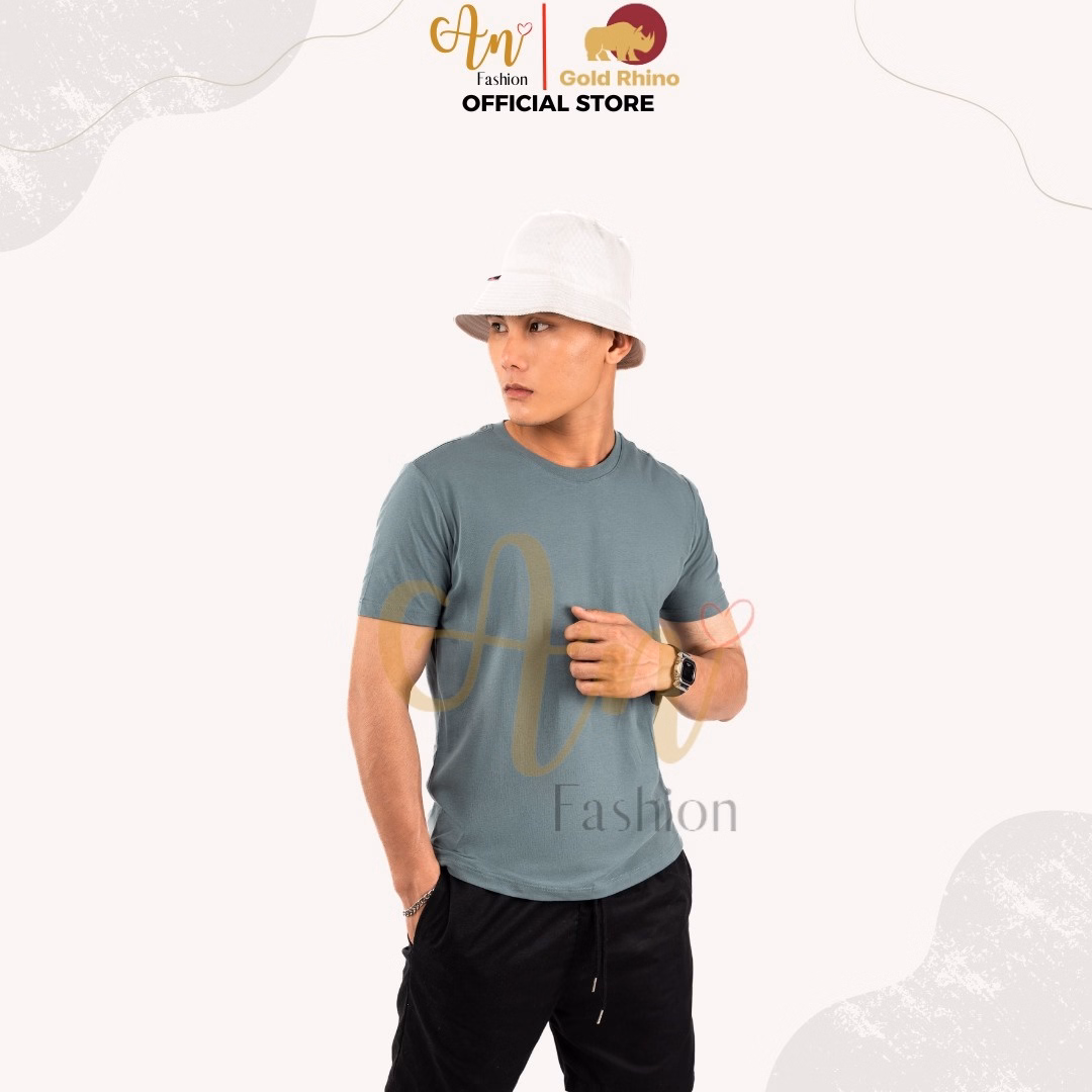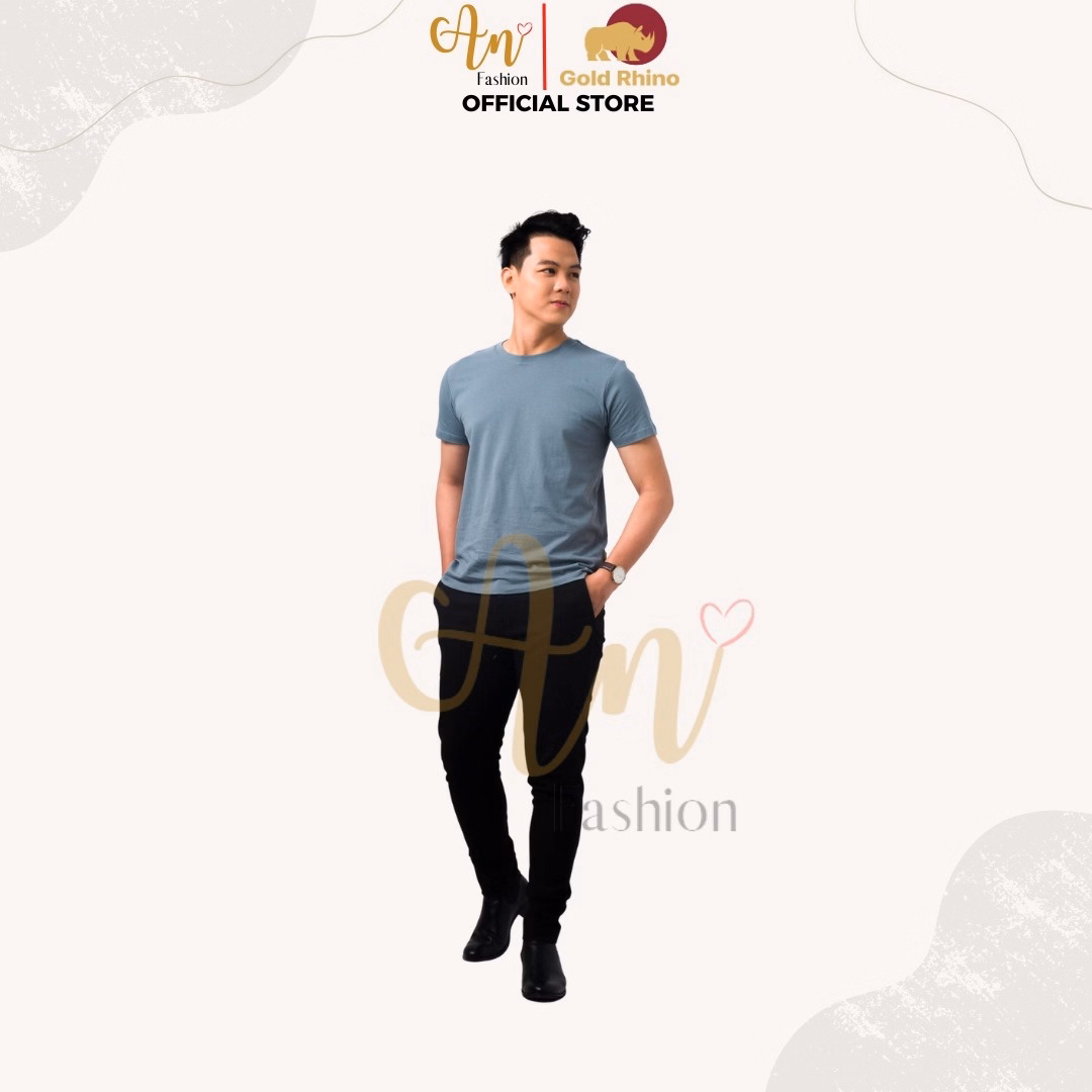 Áo Thun Nam Cổ Tròn Màu Xanh Đá 100% Cotton Cao Cấp – Gold Rhino