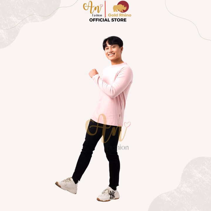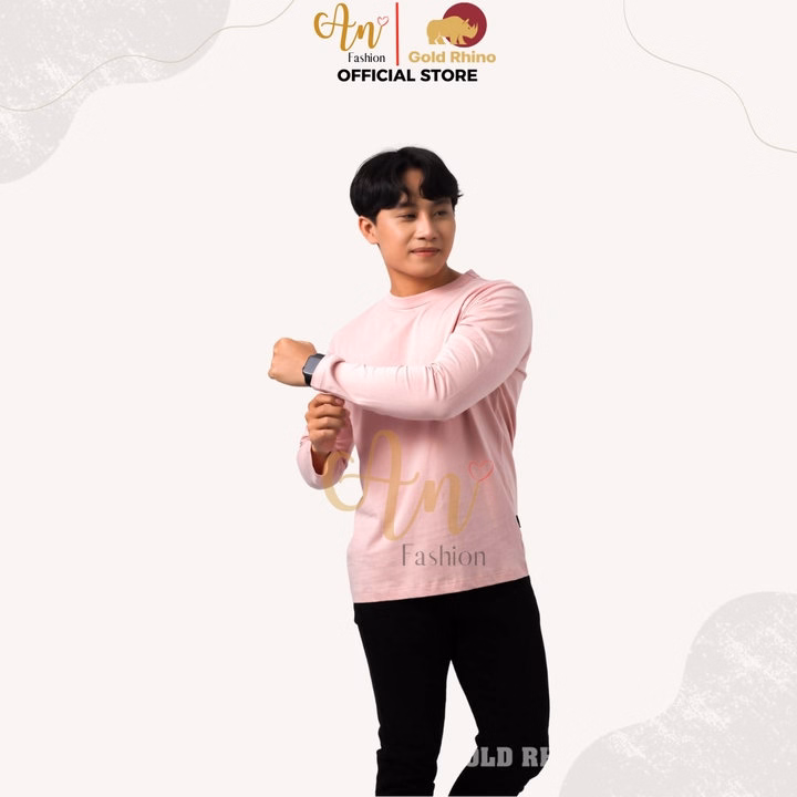 Áo Thun Nam Tay Dài Cổ Tròn Màu Hồng Jp Đông Ấm Hè Mát Chất Liệu 100% Cotton Cao Cấp – Gold Rhino