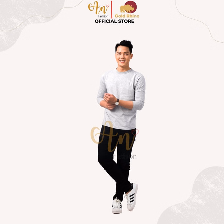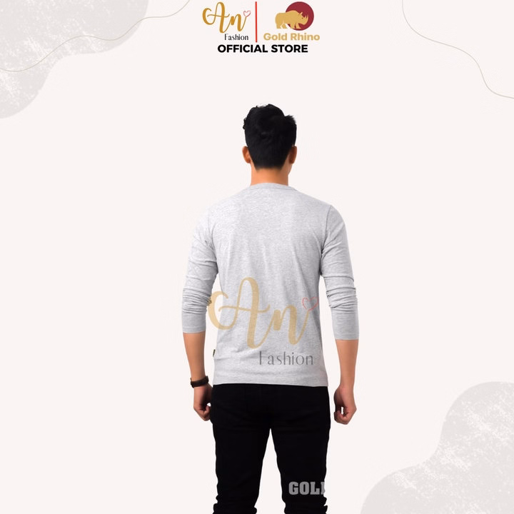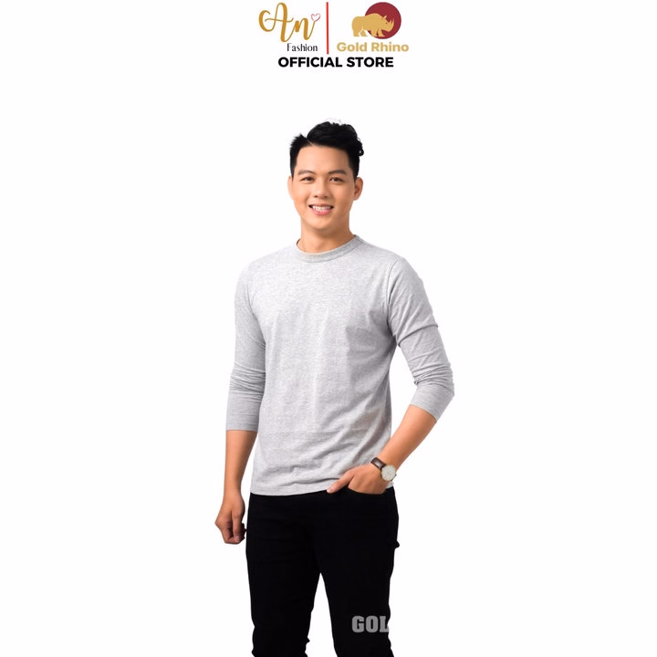 Áo Thun Nam Tay Dài Cổ Tròn Màu Xám Tiêu Đông Ấm Hè Mát Chất Liệu 100% Cotton Cao Cấp – Gold Rhino