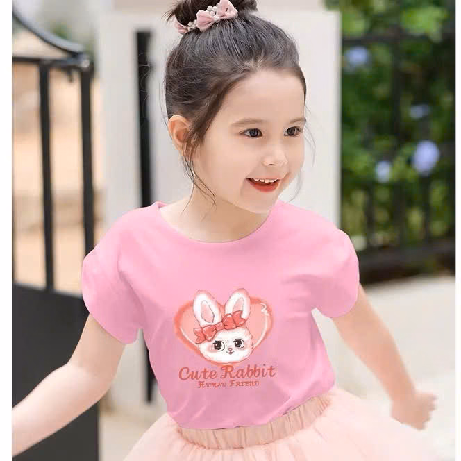 Áo Thun Ngắn Tay, Cộc Tạy Bé Gái Thun Cotton 4C In Thỏ Tim Dễ Thương Từ 8-45Kg Cho Bé Gái