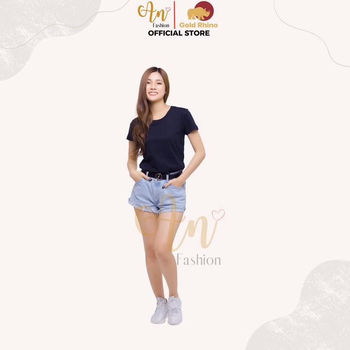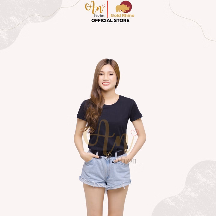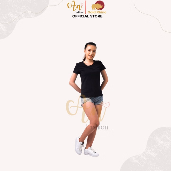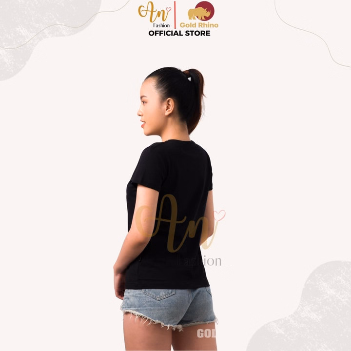 Áo Thun Nữ 100% Cotton Tự Nhiên Màu Đen Cổ Tròn Tay Ngắn – Gold Rhino