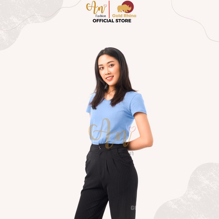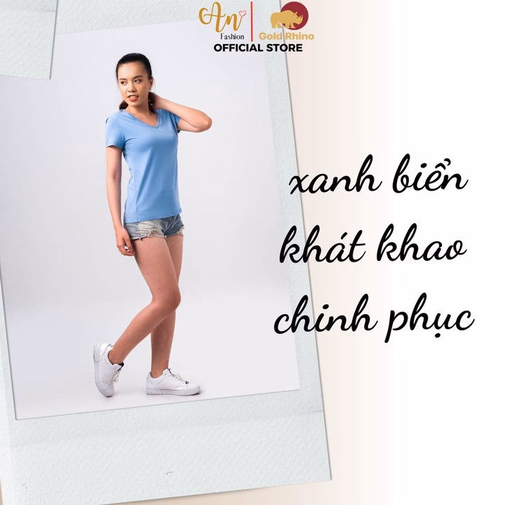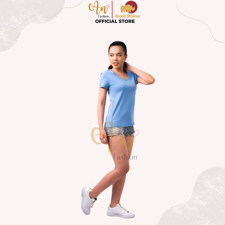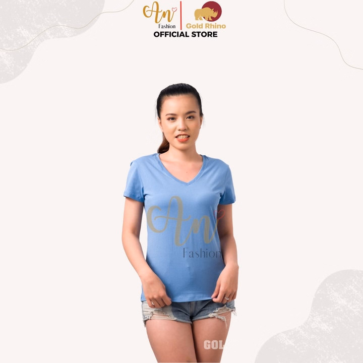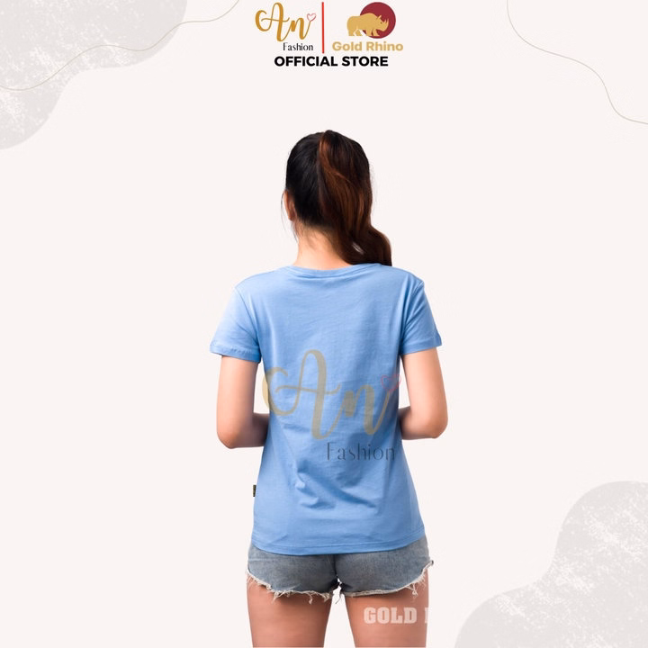 Áo Thun Nữ Cổ Tim Xanh Biển 100% Cotton Cao Cấp – Gold Rhino